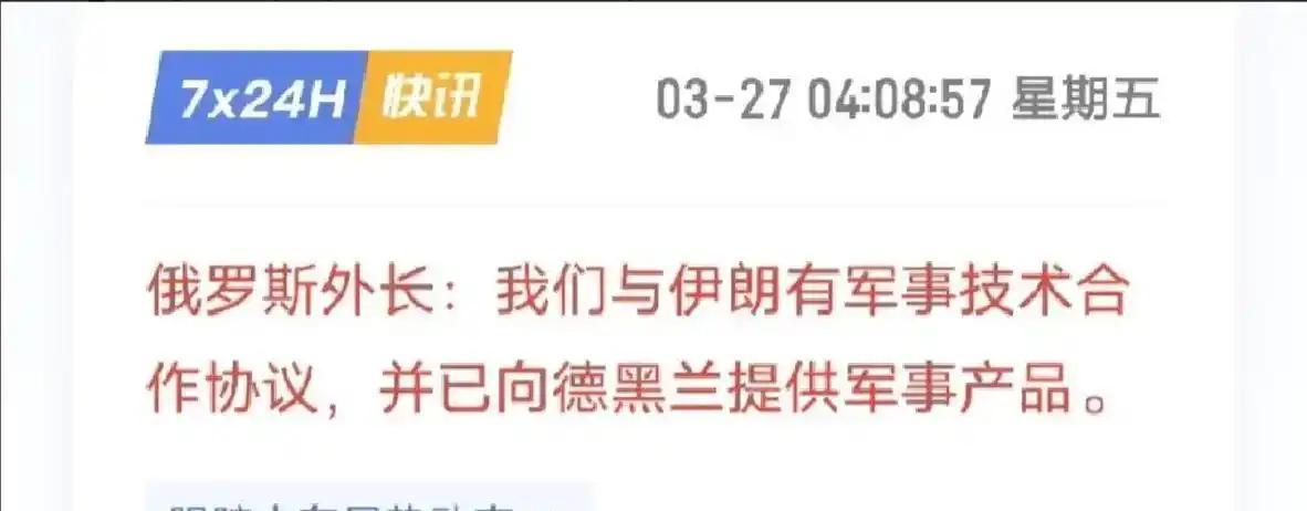 4月1日,俄罗斯外长拉夫罗夫接受法国电视台采访时,没有丝毫含糊,直接摊牌表态:俄伊已经签署了军事技术合作协议,俄方确实在向伊朗提供“某些类型的军事装备”。