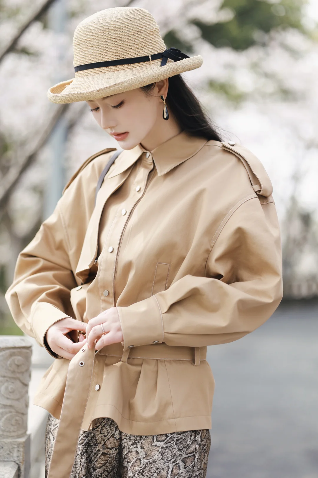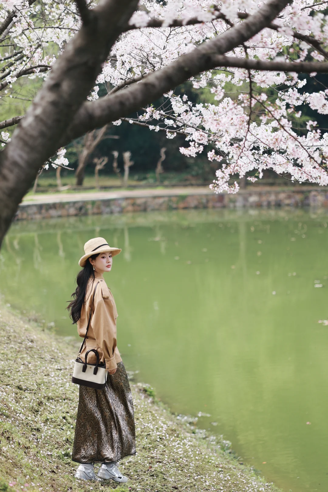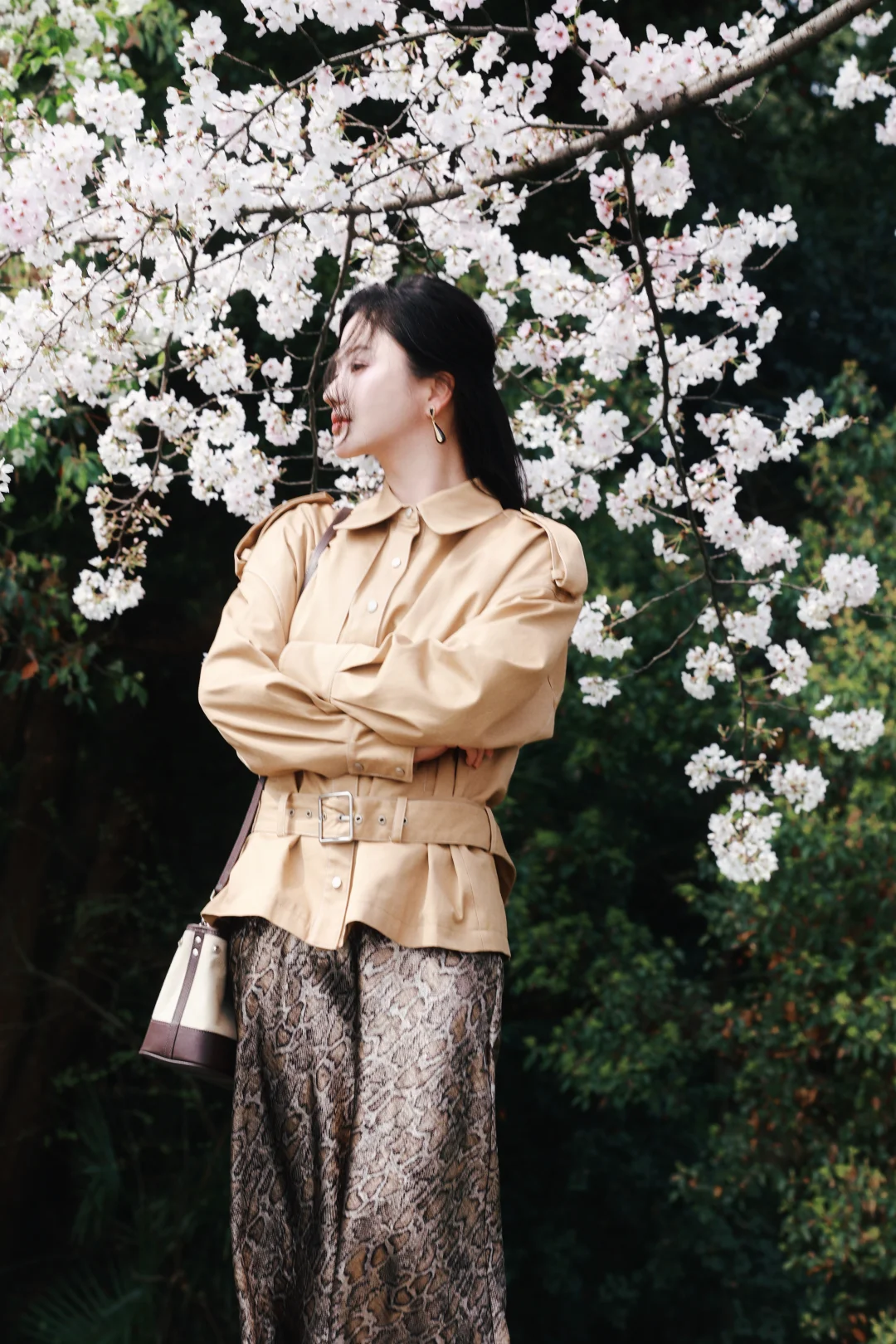 清明樱落🌸长裙风衣组成的春日