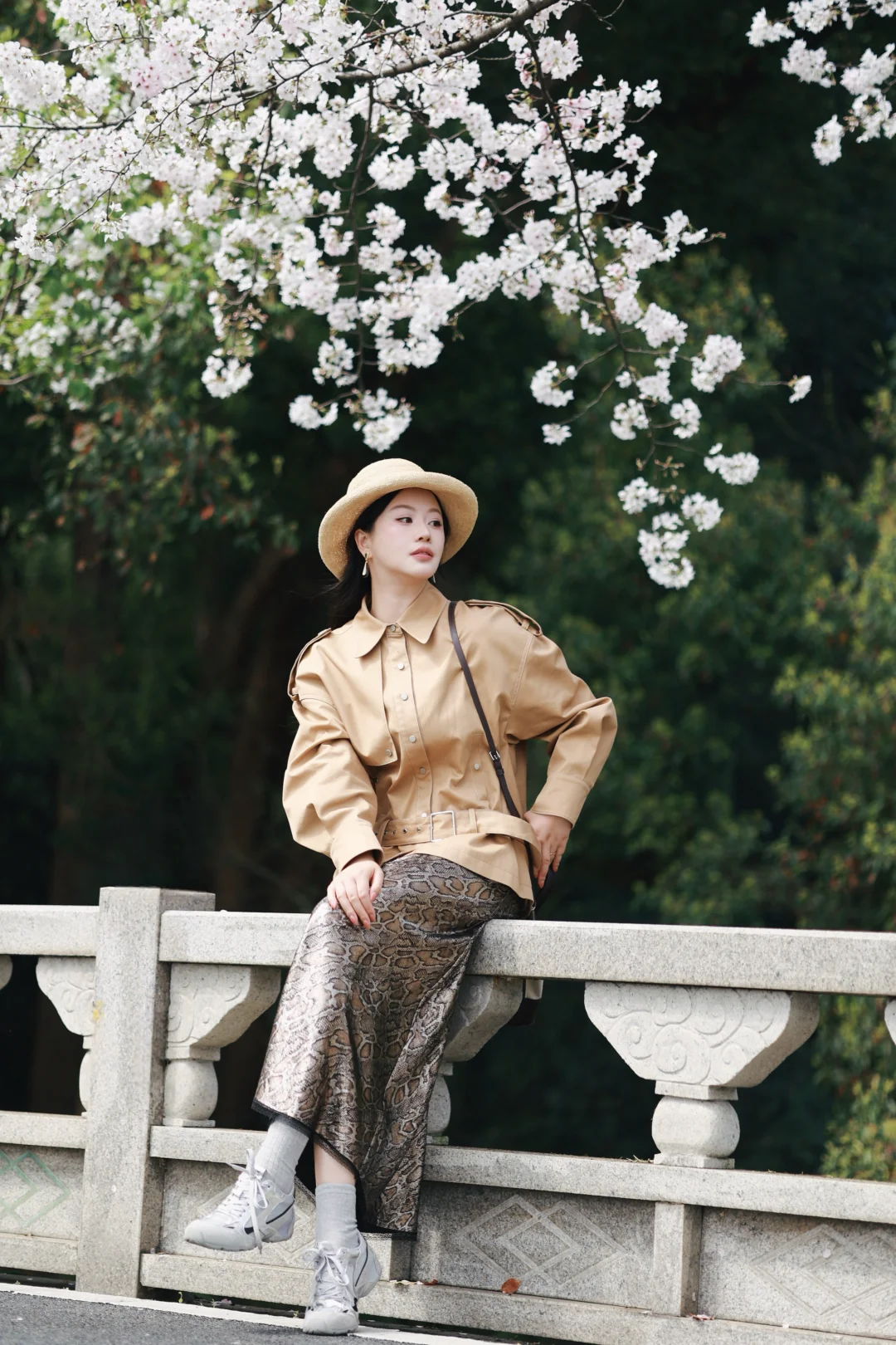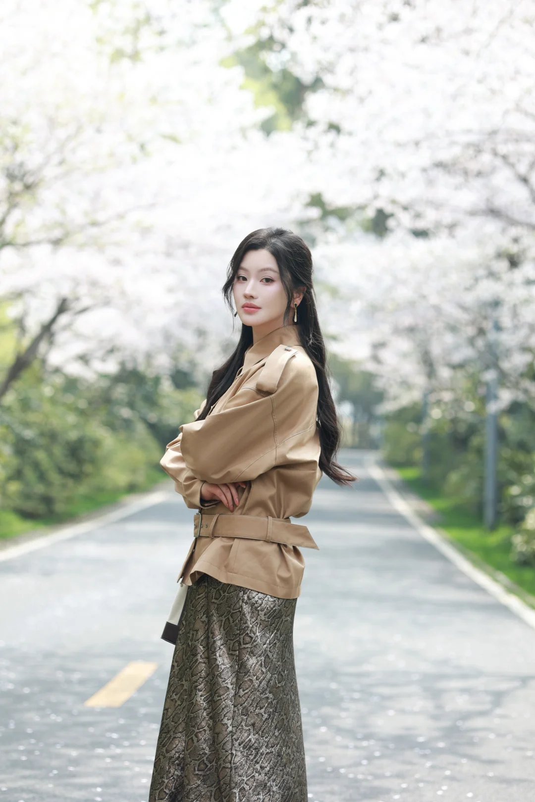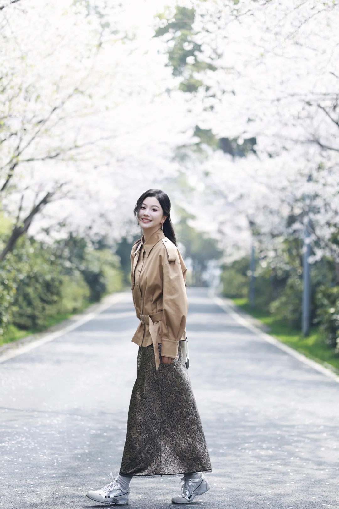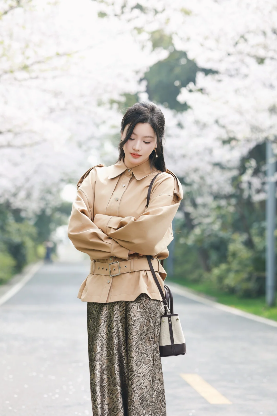 清明樱落🌸长裙风衣组成的春日