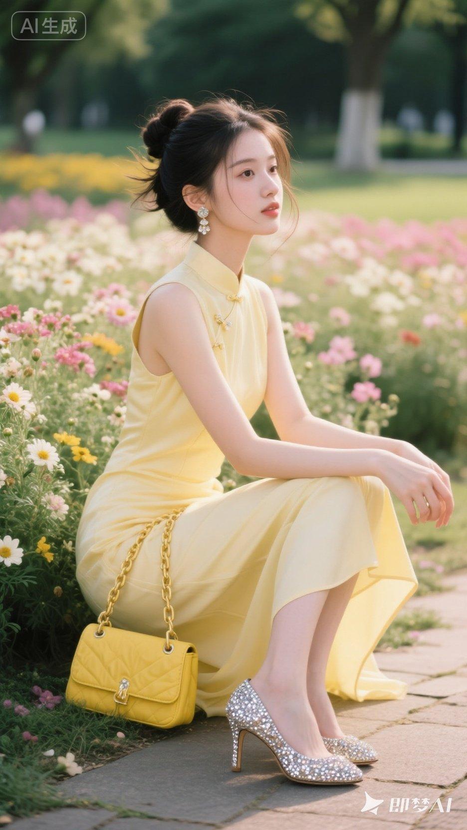 夏日清新穿搭指南:黄色连衣裙与闪亮高跟鞋的完美搭配