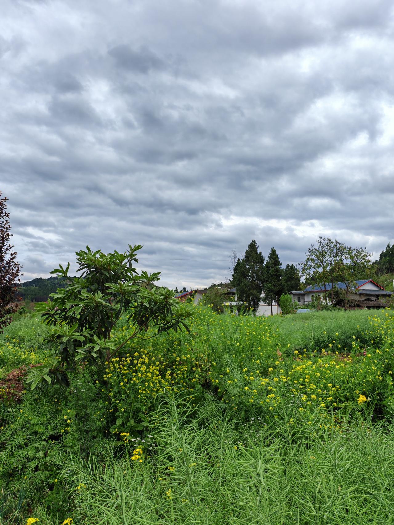 用照片记录家乡的美景匆匆回了一趟老家,感觉家乡随手一拍都是美景。虽然那时是阴天,没有和熙的阳光,但也没下雨,天空低垂着厚重的云层着,清风微凉,沁人心脾。一棵野生的枇杷树下,几株油菜花还开着,而旁边油菜田里的油菜,都早已花谢了,饱满的油菜荚挂满枝头,在轻风中起舞。远处还有不算高的山,一座连一座。蓝瓦白墙的是近些年新农村建设而新修的民房,村民的居住环境和居住条件确实改善了许多,日子也比以前过得更红火了。