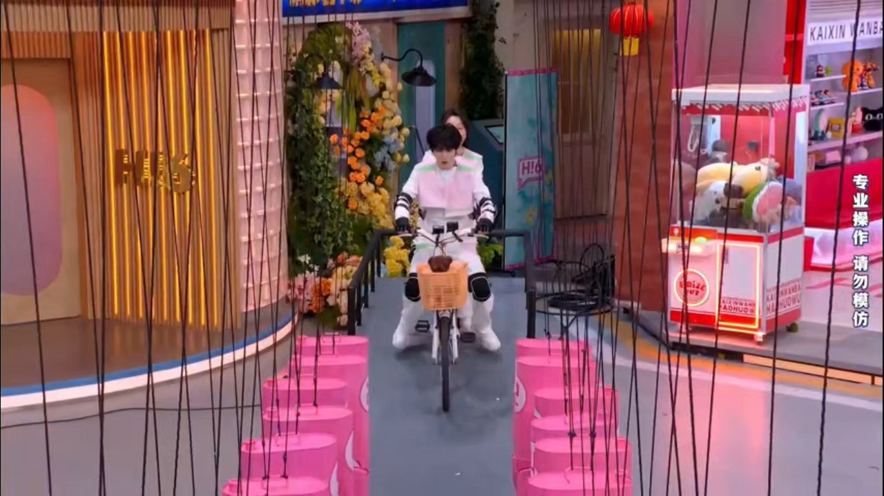 丁程鑫骑车像放了一串鞭炮 丁程鑫玩单车过桶阵频频撞桶,障碍桶被撞得四处飞散,画面节奏感超强,戏剧性拉满,可爱又搞笑,瞬间引发全网调侃。你好星期六