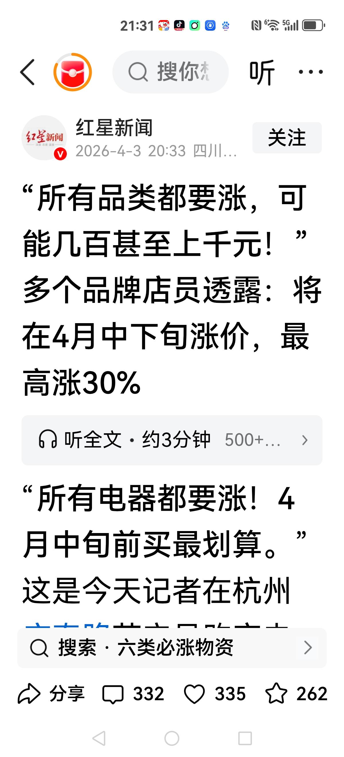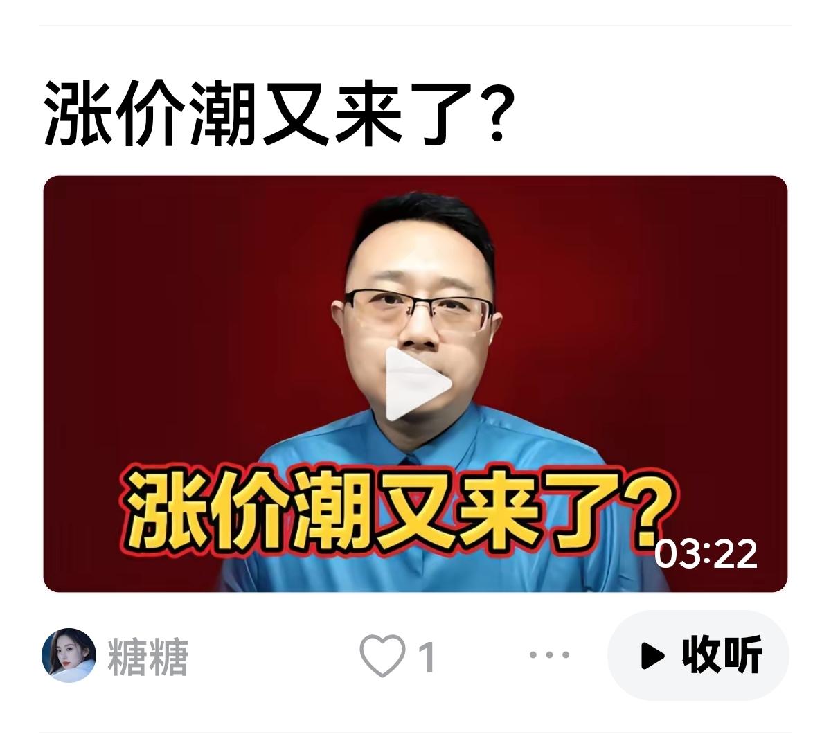 因为全面涨价潮来了,石油,铜等大宗物资上涨导致家用电器,石油涨价,还不是微涨,而是暴涨几百元甚至一千元。