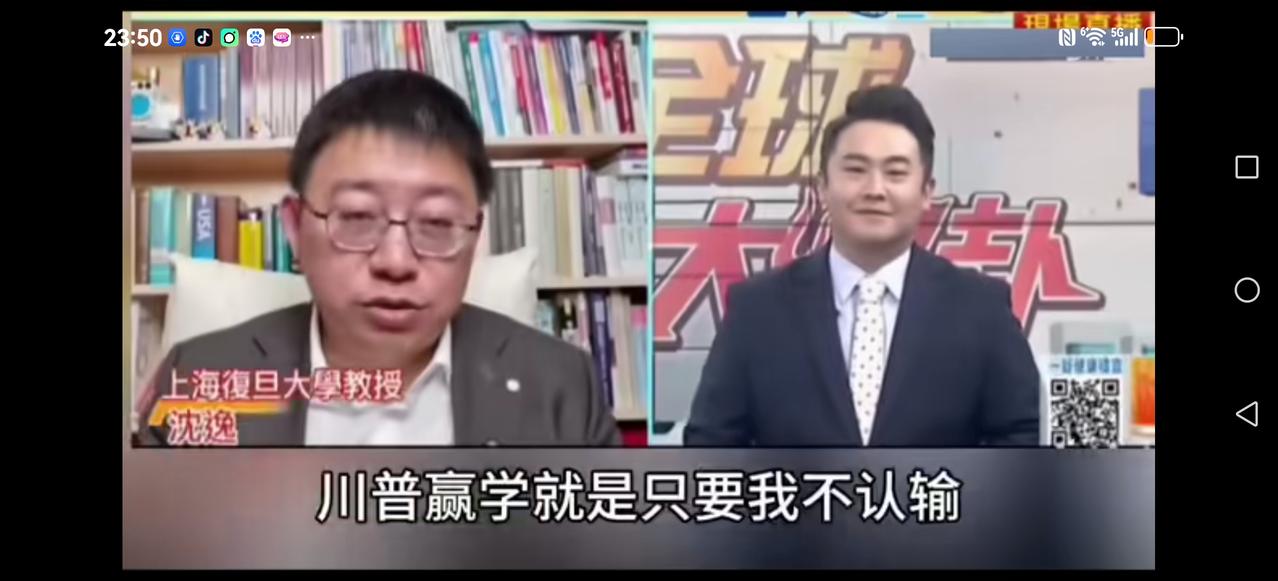 沈逸:特朗普戏法已经变完了,……剩下特朗普赢学,……特朗普的赢学就是只要我不认输……特朗普已经失控了