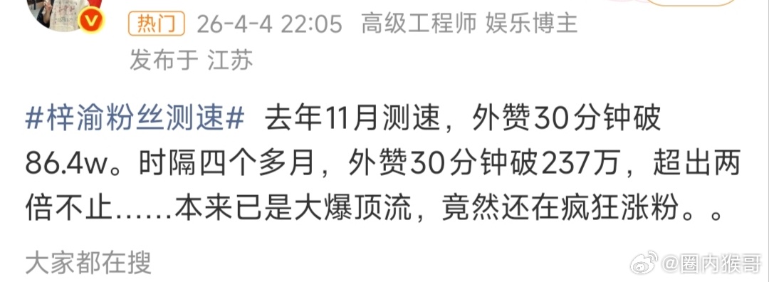 梓渝粉丝昨天晚上的测su这么变态的吗11月测还是30分钟外赞86万呢,时隔四个多