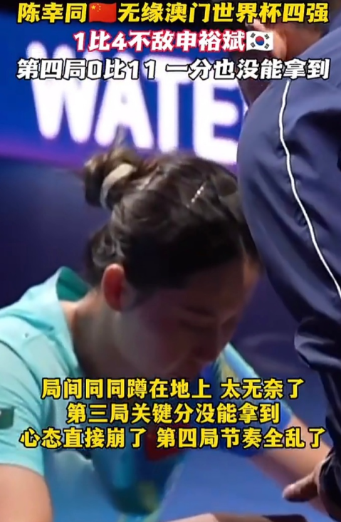 今天外协一个比一个狠,陈幸同无缘世界杯四强,申裕斌打疯了,第四局陈幸同0比11申裕斌,申裕斌创造了历史,成为韩国队历史上首位获得国际乒联女子世界杯奖牌的球员 。