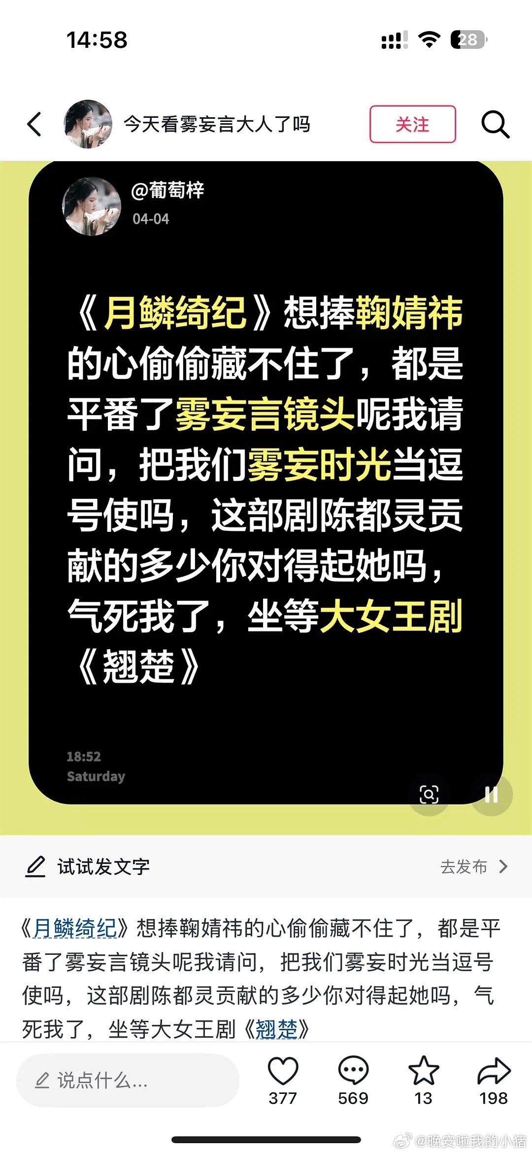 感觉月鳞绮纪要捧的是田嘉瑞吧,pph引战鞠婧祎陈都灵戏份的被发现很快拉嘿删除了…