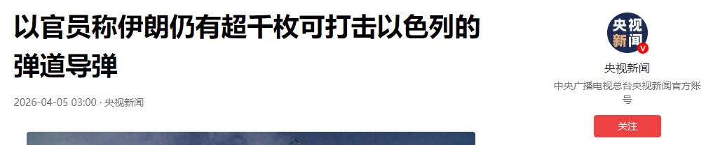 2026年4月5日,以色列情报官员放出一个让所有人都倒吸一口凉气的消息:伊朗手里还有超过1000枚能打到以色列的弹道导弹!