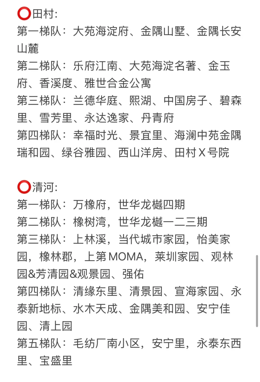 第三梯队:华清嘉园、东升园、水清木华园、三才堂、大通成府公馆。