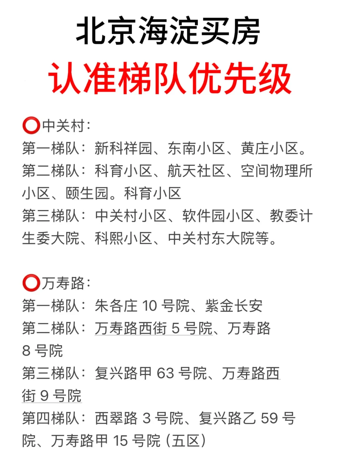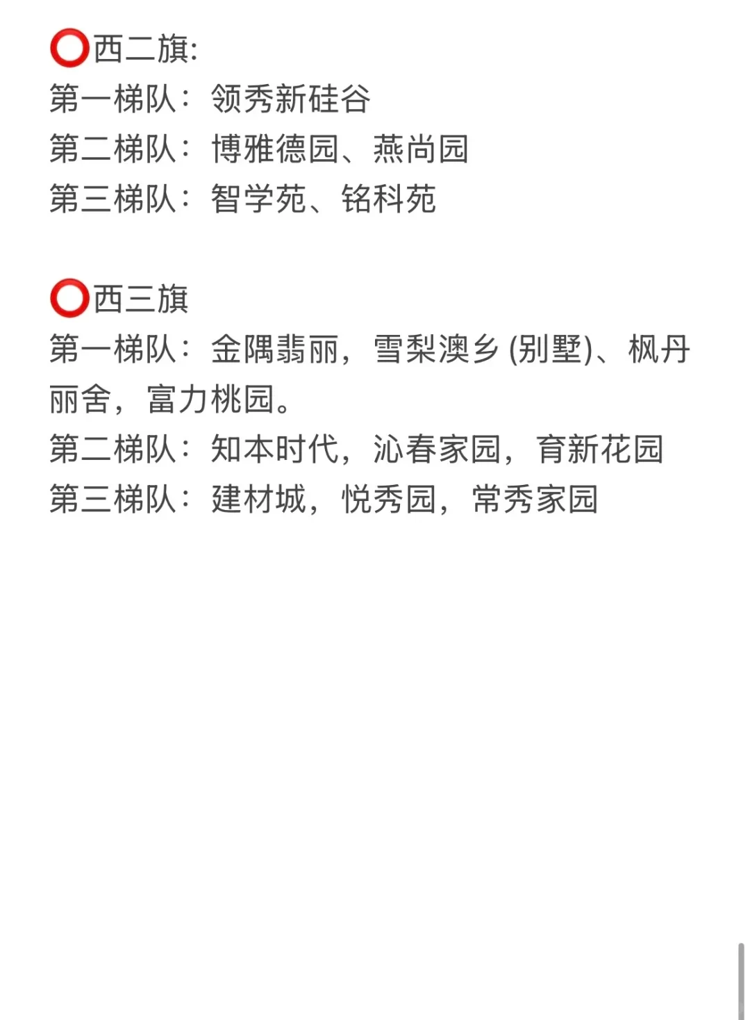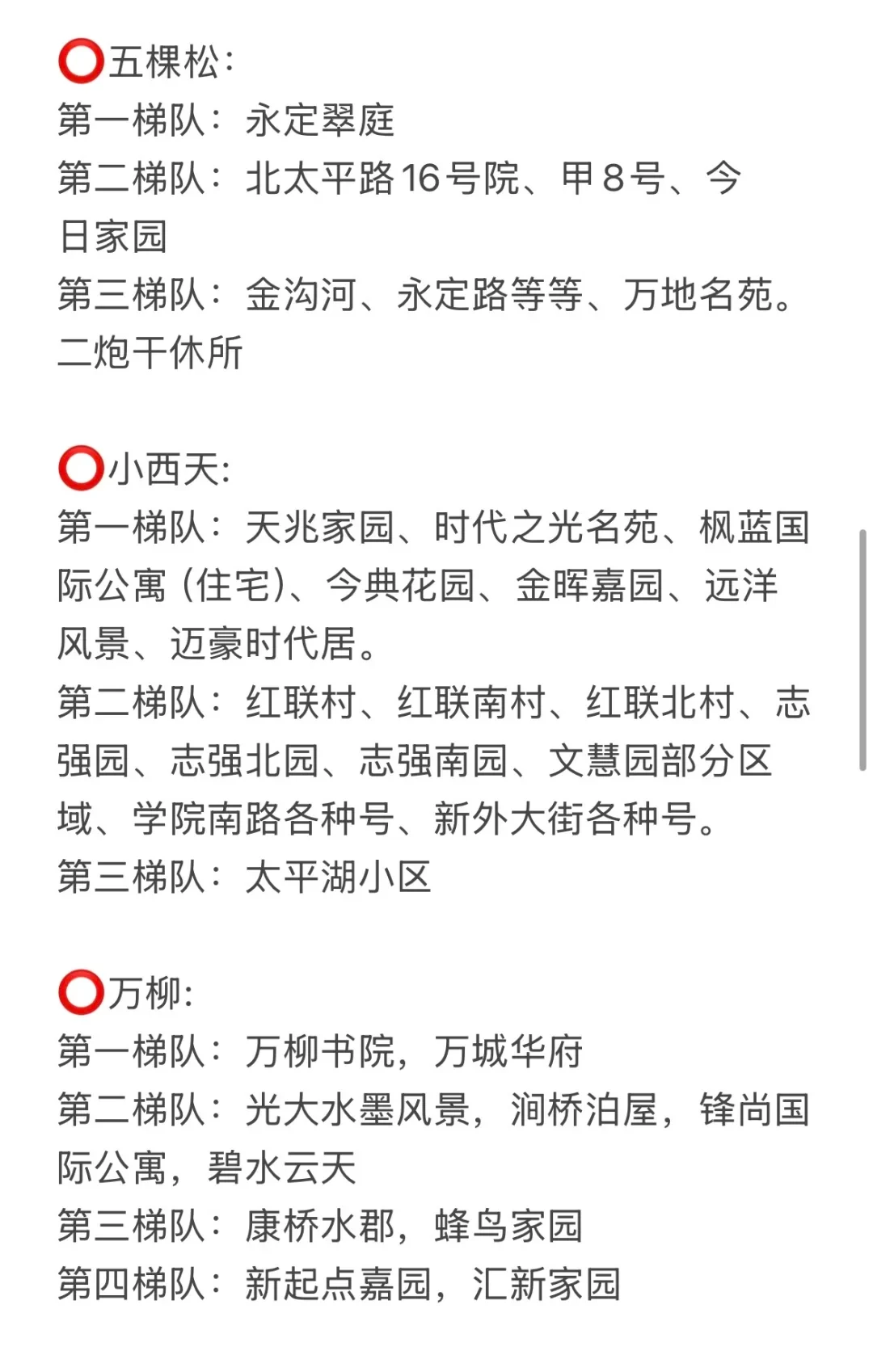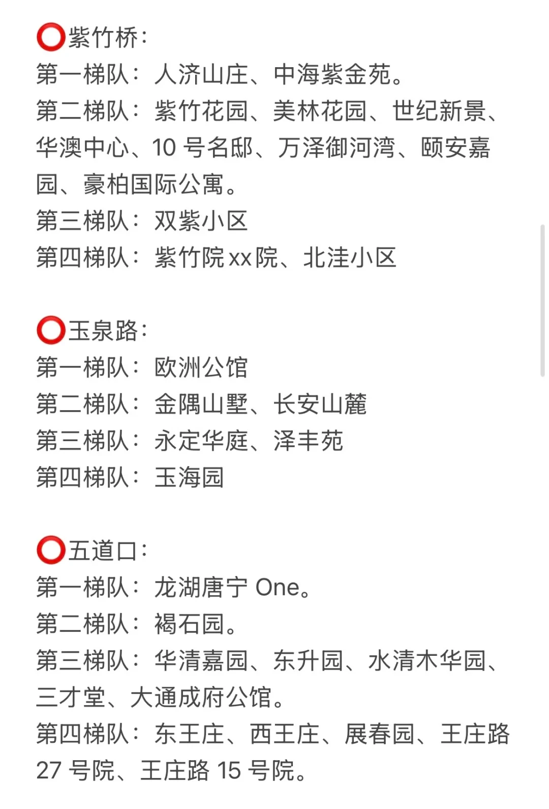 第二梯队:红联村、红联南村、红联北村、志强园、志强北园、志强南园、文慧园部分区域、学院南路各种号、新外大街各种号。
