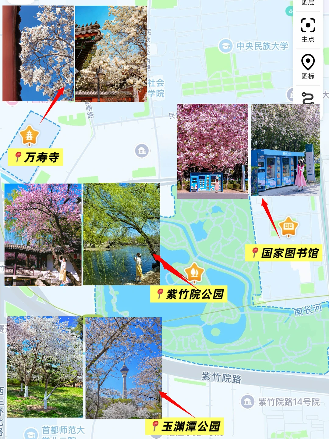 玉渊潭公园🌷→国家图书馆📚→紫竹院🎋→万寿寺/北京艺术博物馆🪻