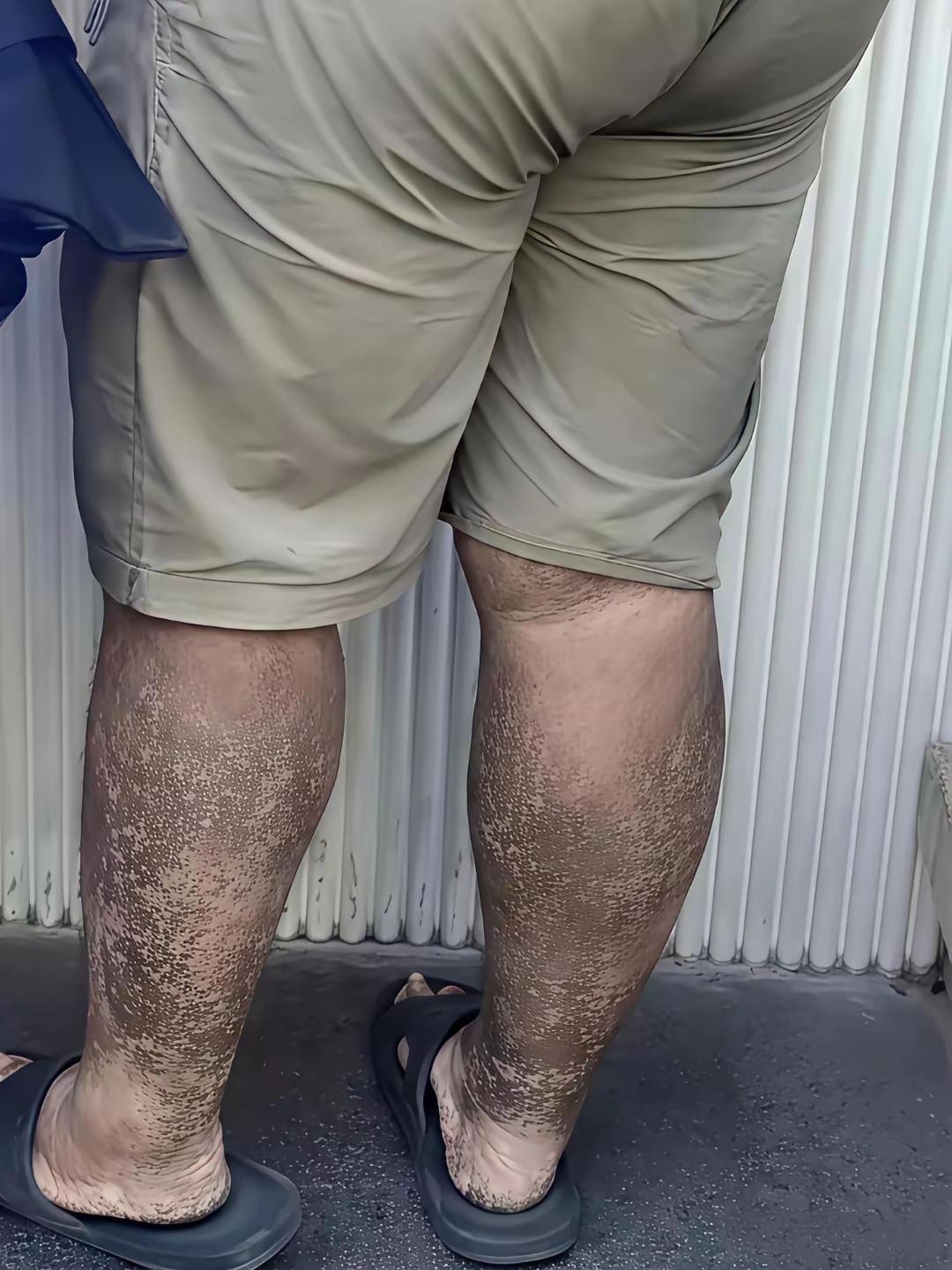 今天电梯里见一个外卖小哥,他腿上这种是怎么回事?