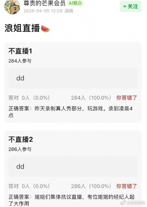 凌晨四点,当城市沉睡,浪姐的录制现场却灯火通明。姐姐们疲惫的脸庞,工作人员熬红的双眼,都在诉说着同一件事:所谓的“真实”,不该以透支健康为代价。尊重每一位参与者,才是节目真正的“乘风破浪”。曝姐姐们集体抗议浪姐直播乘风2026
