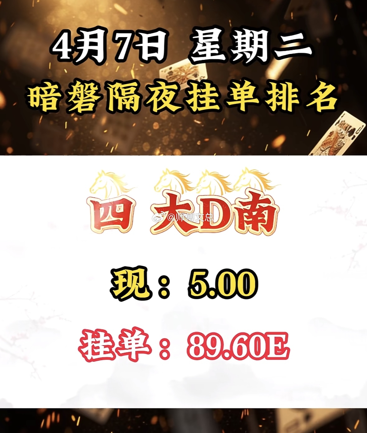 4月7日周二暗盘隔夜挂单排行榜出炉