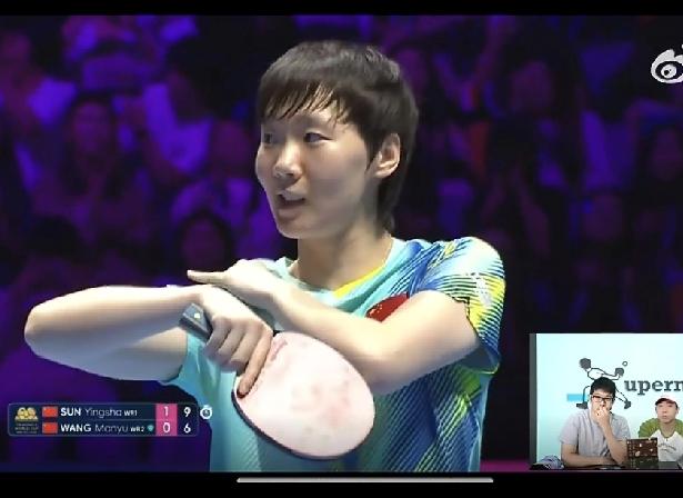前两局孙颖莎11-9,11-8领先王曼昱,刚才第三局莎莎连得几分反超了比分,来到6-5,曼昱叫了暂停。