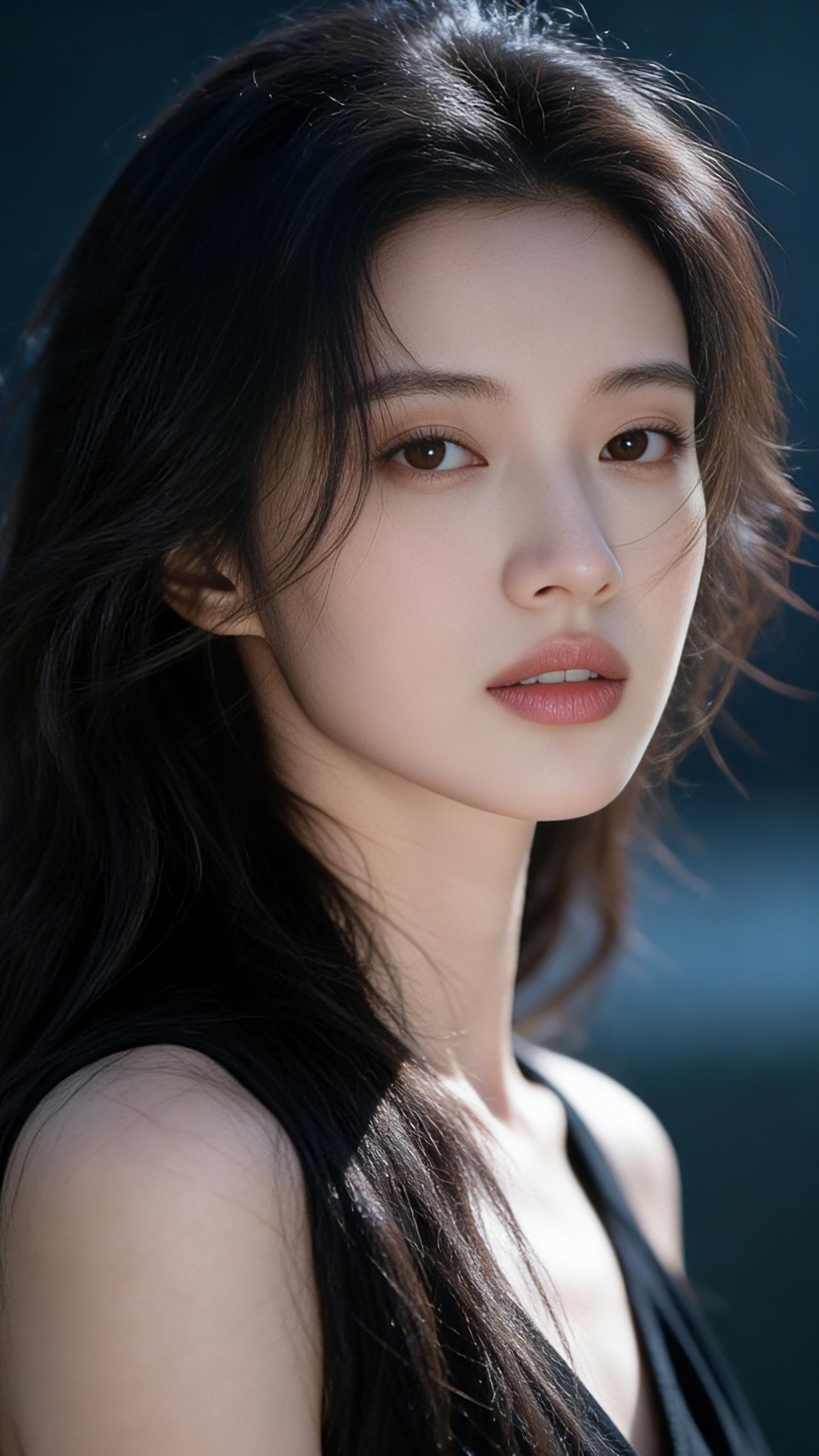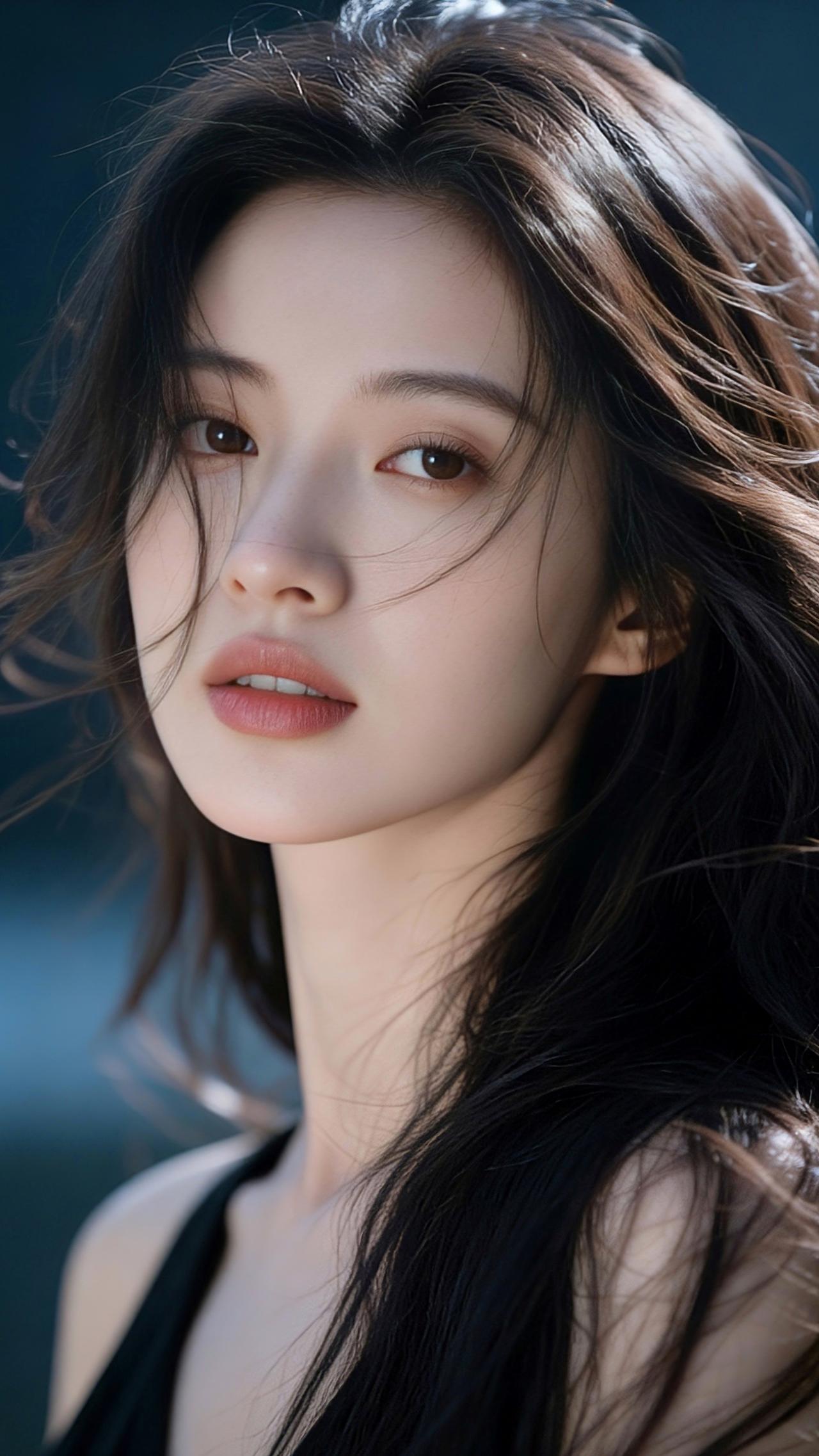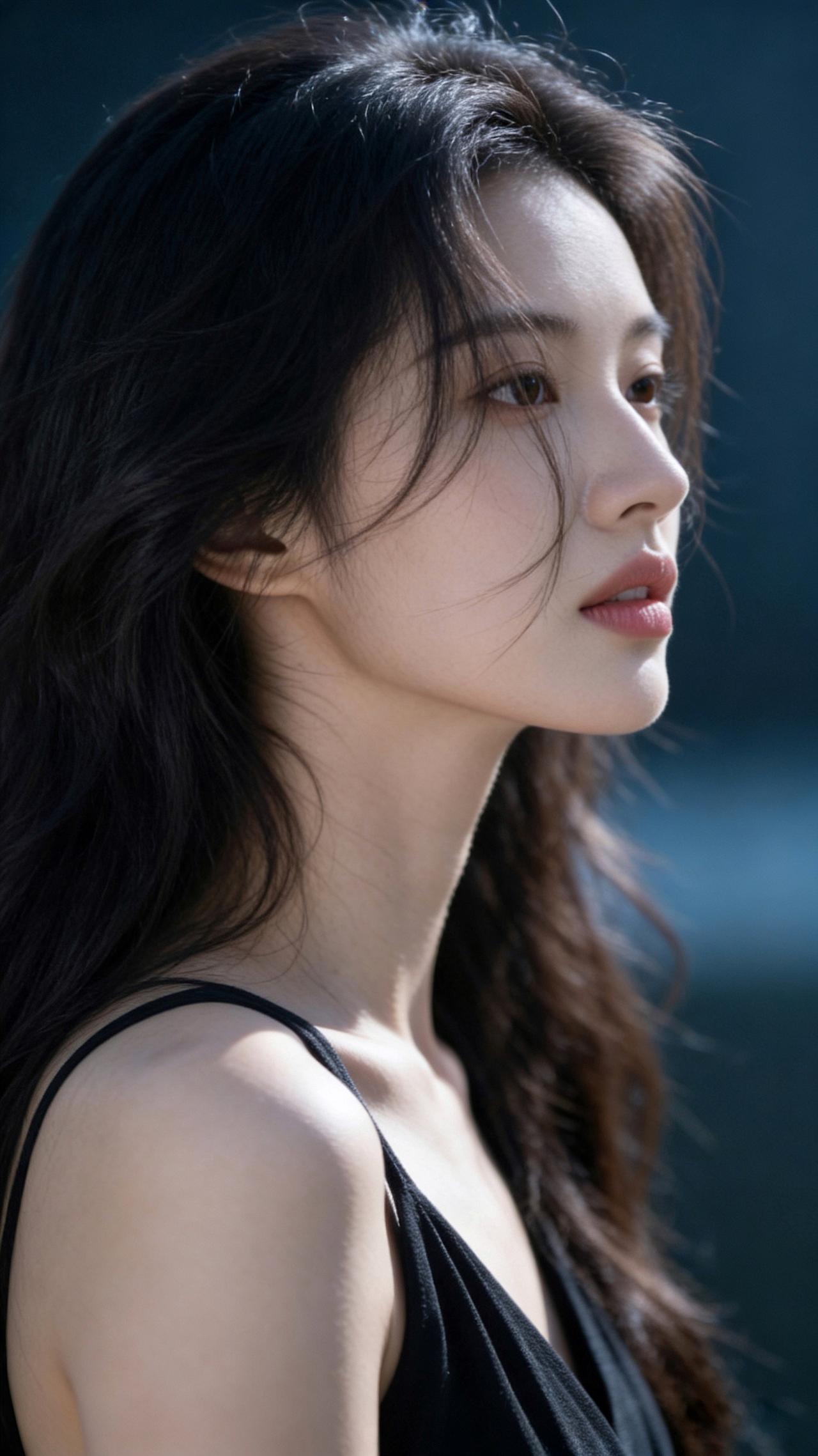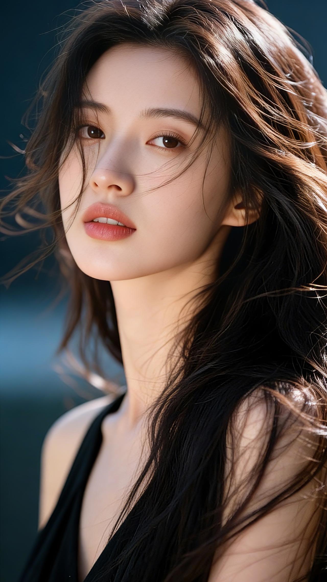 九帧同绘侧颜温婉仙!乌发如瀑垂落,黑吊带衬雪肌莹润。深蓝背景织静谧,微风拂发添灵动。眉眼藏星眸含情,唇角浅笑似春风,这东方美直戳心尖,一眼沦陷! 图片为A l辅助完成,请注意甄别!