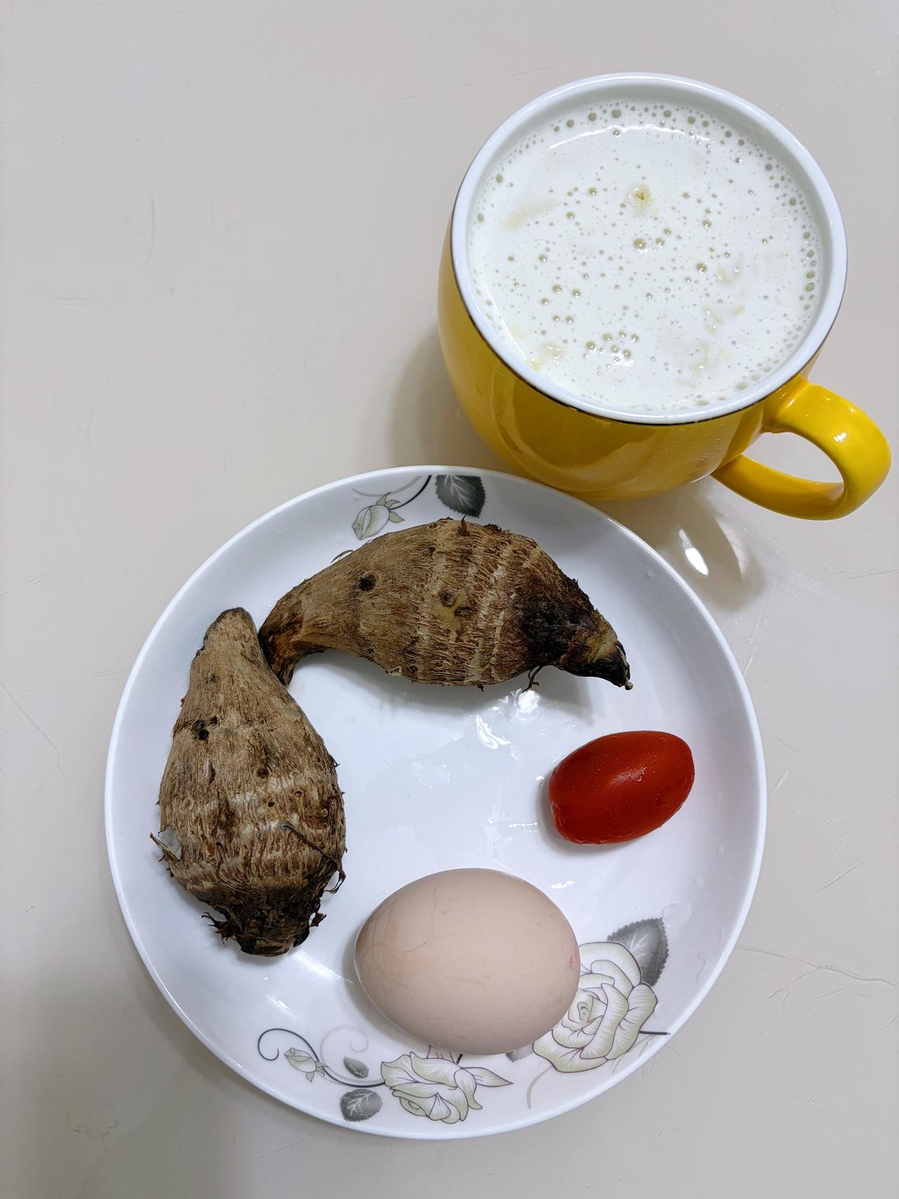 自律减脂健康餐,目标95斤,加油 今日减脂早餐:芋头+鸡蛋+番茄+豆浆