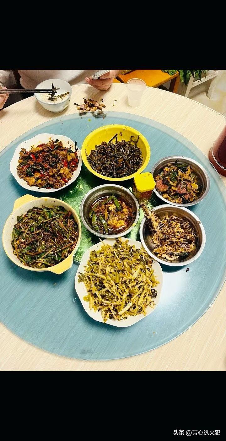 看到视频博主发的野菜,我可太有共鸣了,我老家大山里到处都是。就像贵州的苦蒜,以前被戏称“喂猪都没人要”,现在做成苦蒜粑粑火遍全网,播放量达122.4万次。3 - 4月的贵州,田埂、坡坎边全是这种叶细中空、根像迷你蒜头的苦蒜。它药食同源,自带辛香能开胃解腻。做成苦蒜粑粑,蒸着吃软糯,煎烤外酥里嫩。还有春天必吃的荠菜、野油菜、春笋等野菜,荠菜涮火锅鲜美,野油菜清炒鲜脆,春笋做法多样。老家的野菜就是大山给的美食馈赠!