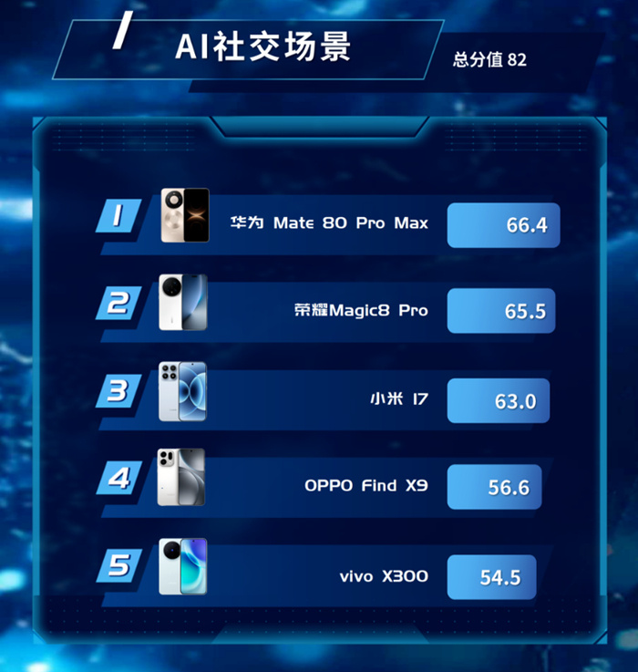 中国电信刚发布了AI手机场景评测报告,五款旗舰同场PK。华为Mate80 Pro