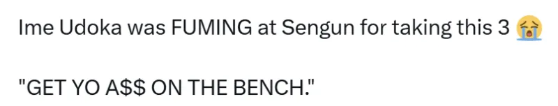 随后申京走下场,并拍拍胸部承认错误,乌度卡表现非常生气,对其说道:你给我滚回板凳去。