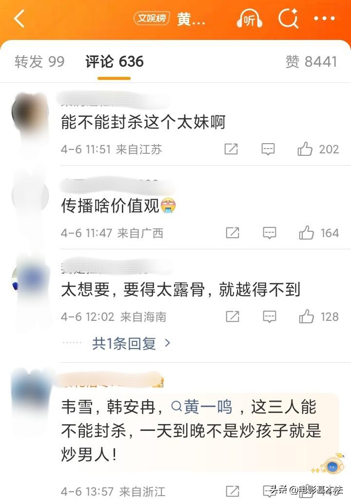 “能不能封🦈黄一鸣这个太妹”、“韦雪、韩安冉、黄一鸣,这三人能不能封🦈,一天到晚不是炒孩子就是炒男人”、“这个母亲有点变态”、“就想吸女儿的血,没手没脚吗?孩子还小什么都不知道,等她长大了愿意看到自己妈这个样子吗?”…… “黄一鸣自曝没想到女儿跟爷爷长那么像”冲上热搜以后,令人意想不到的事发生了,绝大多数网友认为这样频繁炒作女儿非常反感,针对提出两大诉求和一个观点。 一个诉求是能不能让黄一鸣退网,第二个诉求是黄一鸣能不能不要伤害孩子,有手有脚不要炒作孩子好吗,观点是认为闪闪并不像王家任何人,和黄一鸣没整容前一模一样(图3),所以一切很可能就是黄一鸣自导自演的独角戏而已。 不清楚真相,只想说,这种“祥林嫂”的故事一直讲,效果只会适得其反,伟大的作家鲁迅先生在102年前的1924年就通过小说《祝福》揭露的人性的复杂性,没想到黄一鸣现在还没懂。