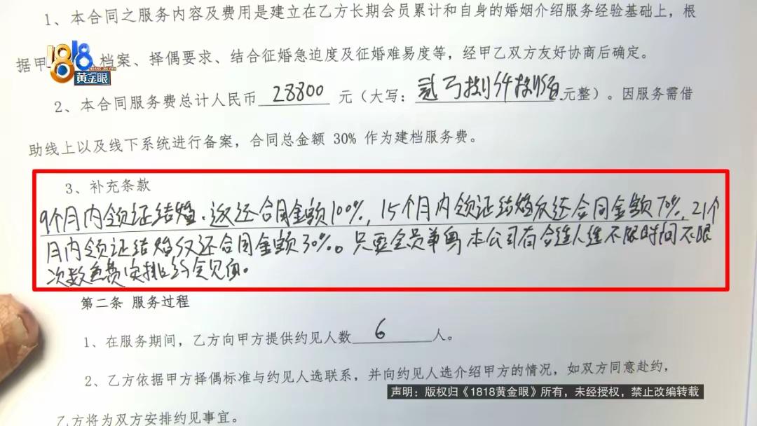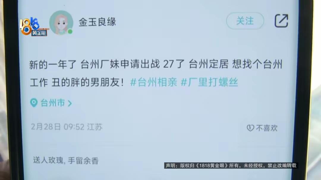 浙江31岁小伙被催婚,看到有人找丑胖男友,立刻加好友,结局太意外。 浙江台州人小张,今年31岁,一直被家里催婚,在家人的帮助下,小张也相亲了好几个女孩,但总是没有合适的。 直到今年3月份,小张在社交软件认识了一位网友,这位网友忽然打动了小张的心。 这位网友的网名叫“金玉良缘”,最醒目的是在她的备注栏里写了一句,“她只找丑胖男友。” 很快小张加了对方联系方式,和对方聊天后,小张更是发现这是一个善解人意的女孩。 她非常能读懂小张的心思,对于小张久久找不到对象的事,她也予以安慰,表示缘分的事不要着急,她还一再的告诉小张,那种只是玩玩的女孩就别谈了,浪费时间,要找就要找那种奔着结婚去的。 小张的工资本身也不算太高,小张将自己的薪资告诉女孩后,女孩不仅没有一点点嫌弃,还对小张说,这够好了,比很多人强多了,小张表示,自己年龄大了,女孩也表示,这没什么的,你这个岁数,好多都是单身呢。 和女孩聊了没多久,小张就感觉如沐春风,她真的太懂我的心思了,她知道我想要的是什么,当我对自身条件感到顾虑时,她也能够及时地开导我。 说实话,小张找对象这么久,还从来没遇到过如此善解人意的女孩。 渐渐地,小张对女孩产生了好感。 约定要和女孩见面时,小张更是觉得非常高兴,他的确很想见见女孩,和她好好聊聊天。 然而没想到接下来的事,却发生了巨大的反转。 两人吃了一顿饭后,兴高采烈的小张才得知了一个事实,女孩原来是某家婚介公司的员工,她跟小张说这么多,只是为了让小张花钱,托他们公司帮小张找对象。 小张想着,女孩聊天如此打动人,他们公司一定很不错,就花了28800元报了名,让公司介绍对象。 然而才到了第2天,小张就发现自己真是一时冲动了,他原封不动的把婚介公司的名字输到网上,却发现里面很多差评。 于是小张就急忙赶到公司要求退款,这时对方就要扣掉30%的违约金。 好在,小张请了记者帮忙协商,最后只扣了小张15%的违约金。 才过了一天时间就扣掉这么多,对小张来说真的是一笔损失,要知道这一天来,对方什么都没为小张做,最关键的是,小张查到的这些不好的评论也是事实,可尽管如此,也不能全额退款,小张感到很心疼。 回头再看看女孩起的那个昵称,说白了就是为了吸引眼球,吸引流量,小张当初不就是被这个网名给吸引的吗? 也有人说,前期小张被吸引可以理解,但后期小张就不该在对方身上花钱,因为一旦你认真了,就有可能损失一些钱财。 总结,希望有了这次的经历后,小张能够在下次交友时提高警惕,别再轻易的被忽悠了,真想找一个心仪的女孩的话,还是自己慢慢认识比较好,不一定非要通过机构,最后,祝小张尽快脱单,迎来好运。 参考资料,红星新闻,2026年4月6日报道。