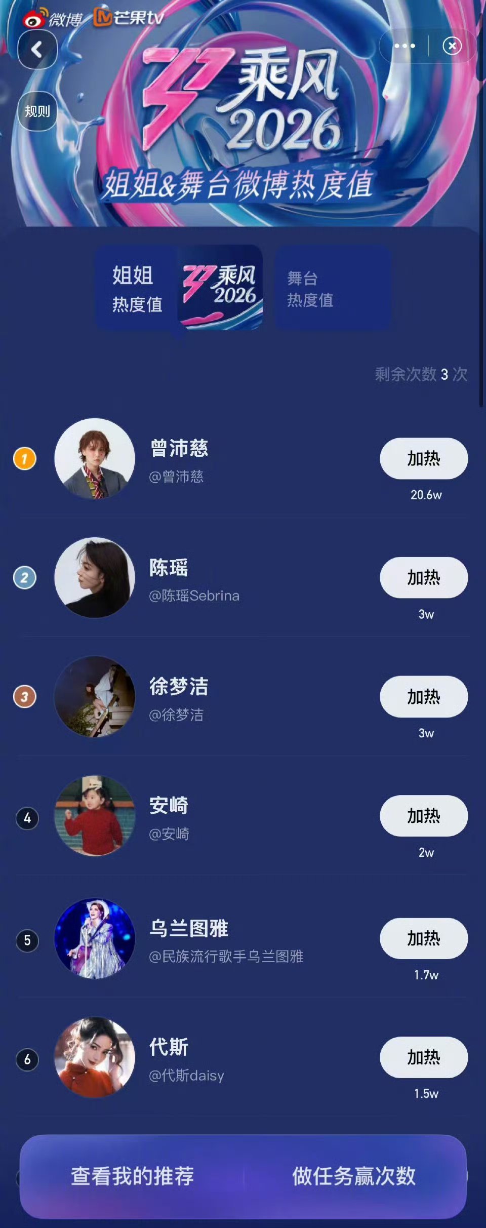 曾沛慈热度值破20万恭喜曾佩慈姐姐现在的热度已经破20万,断层第一!🎉🎉🎉,有颜有实力的曾沛慈有谁会不喜欢呢,期待姐姐之后的一公舞台,会有跳舞吗!曾沛慈 断层第一乘风2026