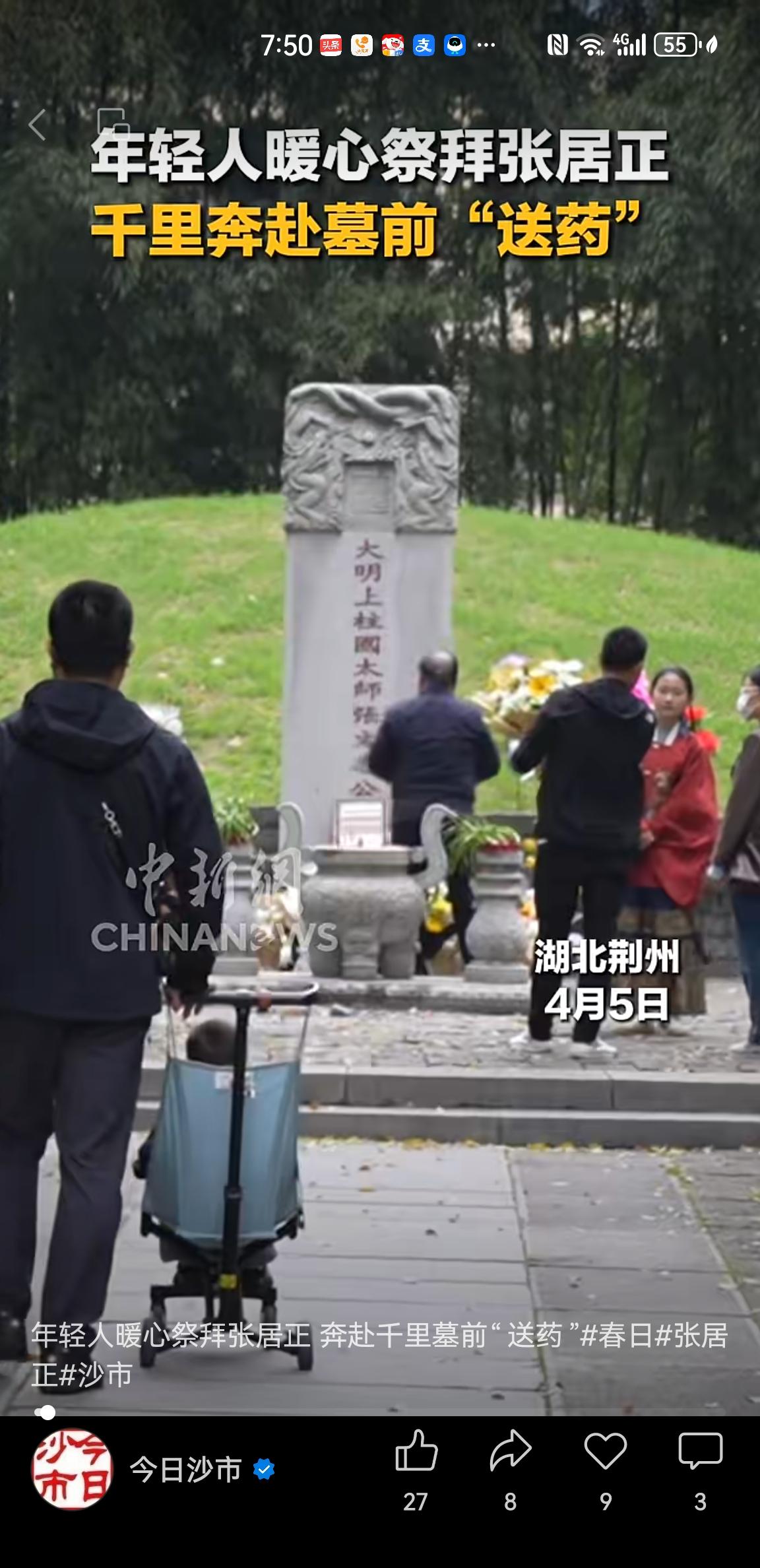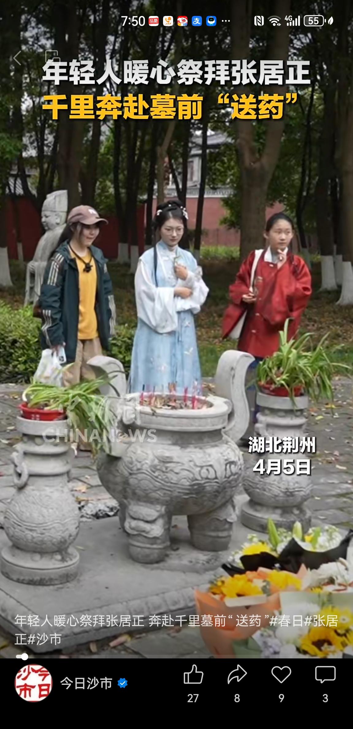 游客不远千里来荆州给张居正首辅大人送药祭拜🙏怀古思人之情感动日月[祈祷]