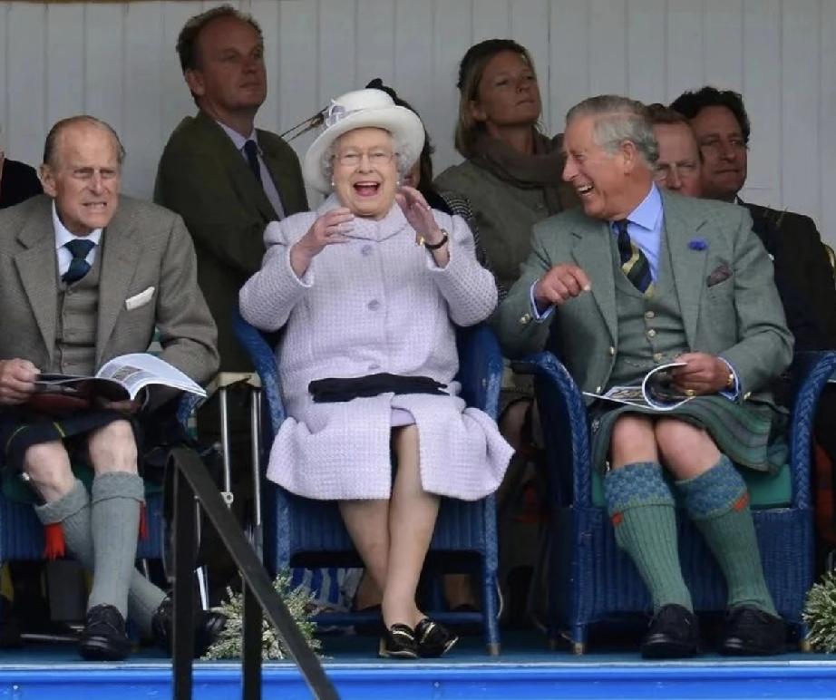英女王伊丽莎白二世是个快乐的女人。 她的丈夫菲利普亲王英俊又潇洒,夫妻俩好开心,女王还笑弯了腰,那时的他们还年轻。 系着红丝巾的女王好亲切,她站在西装革履的丈夫身边,像个贤惠的家庭主妇。 菲利普亲王佝偻着身体端坐着,女王兴奋的像个孩子,查尔斯欣慰的看着妈咪,父子俩穿着长袜露着膝盖的打扮极具英伦风。 女王是位慈祥的老奶奶,她对哈里、威廉王子亲不够,看着调皮的小乔治,隔辈亲溢满了屏幕。 凯特王妃戴的帽子挺别致,造型有点看头。