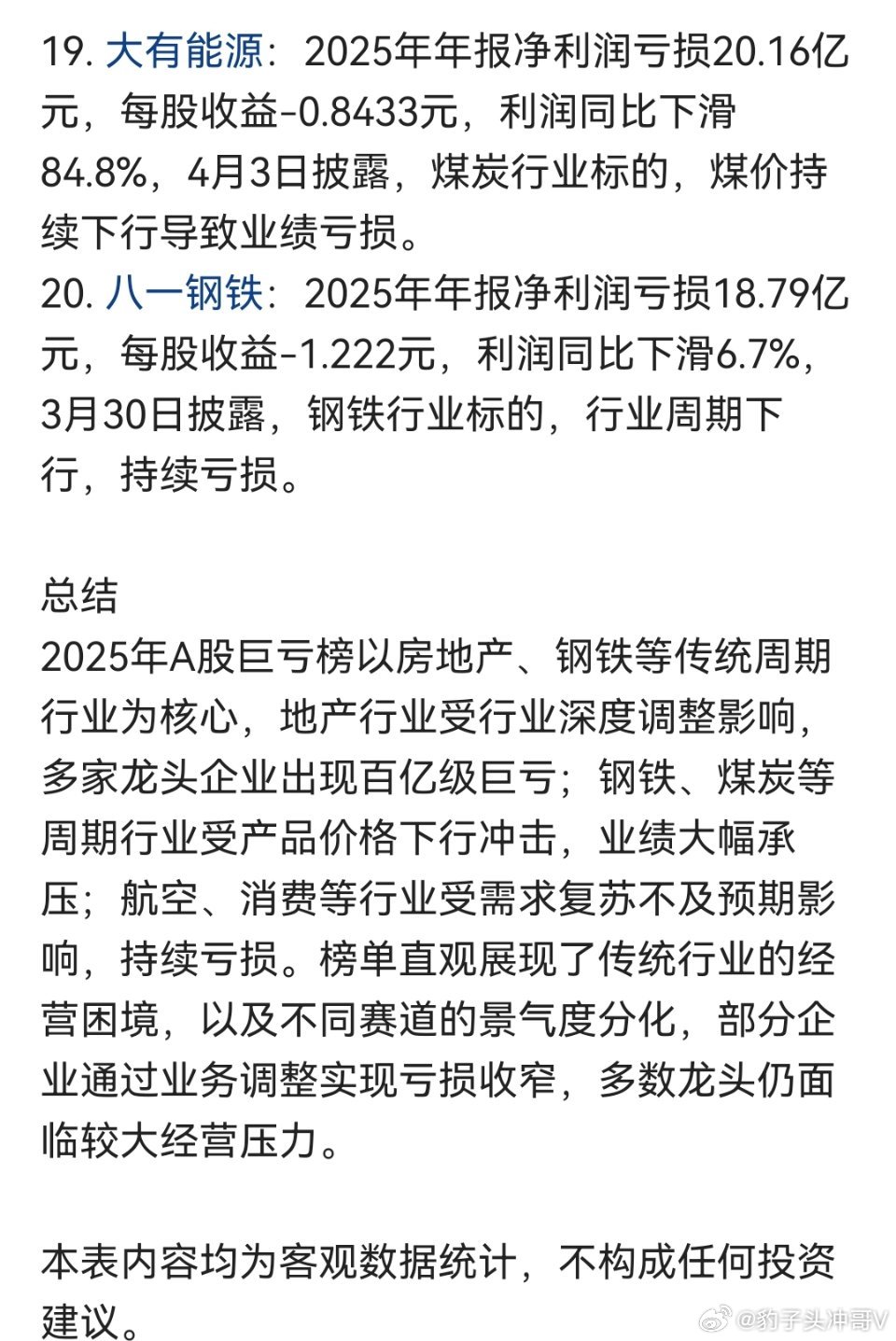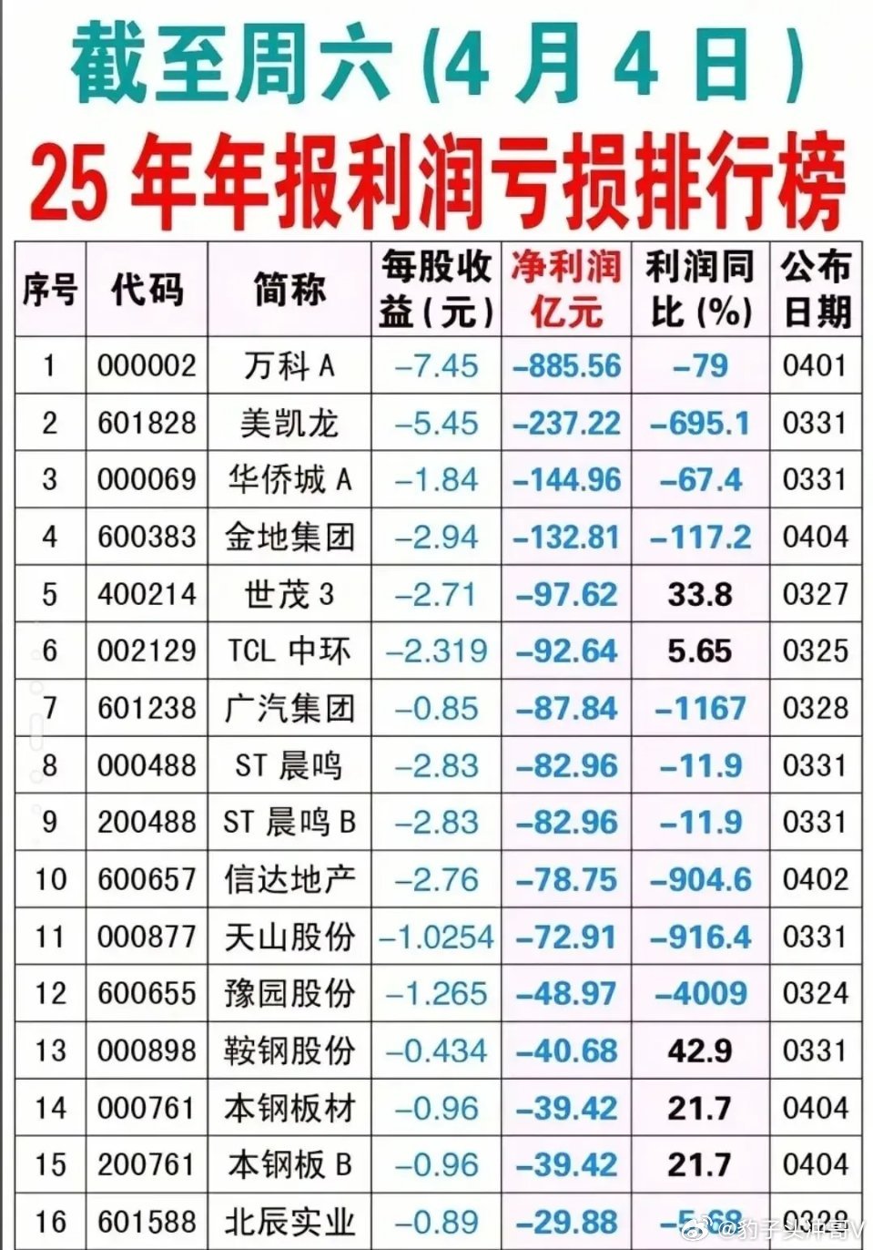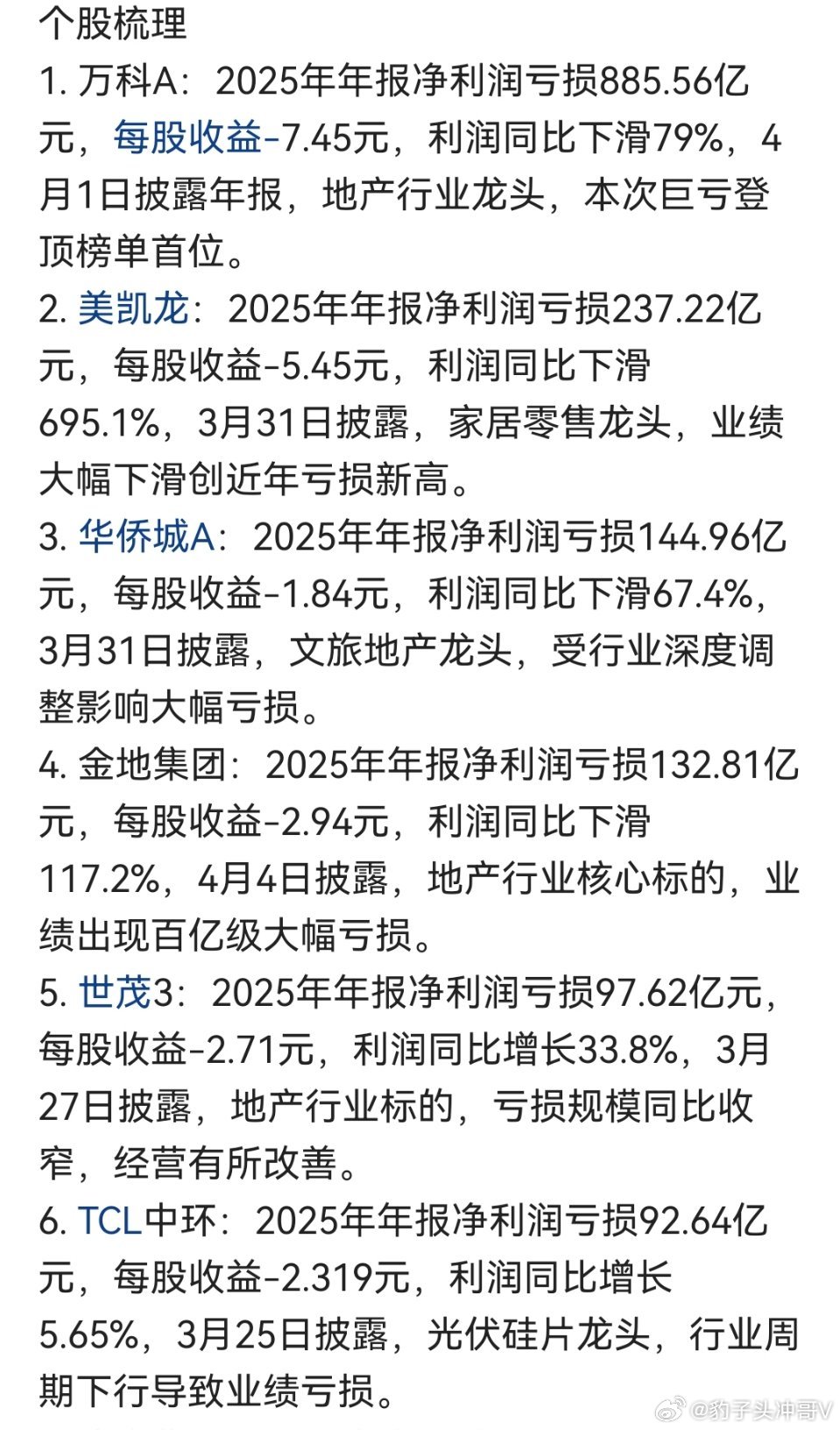 A股年报巨亏榜TOP20!万科亏885亿霸榜,地产、钢企成重灾区!