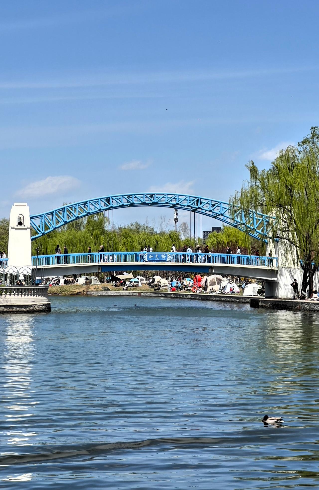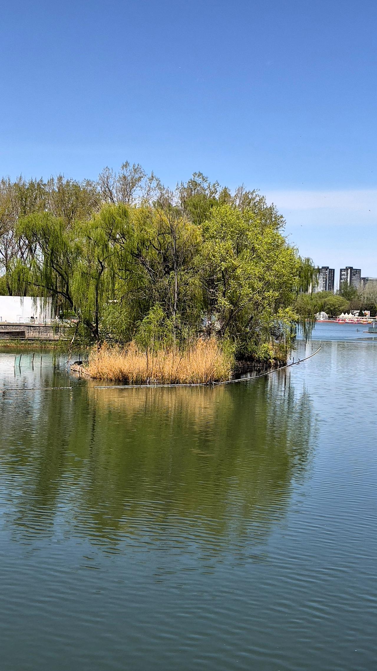 北京朝阳公园 · 春日盛景 春风拂过,朝阳公园便从冬日的沉睡中苏醒,朝阳公园是四环内最具特色的世外桃源。 进入三月份,朝阳公园的春花依次盛开,满园皆春色。 山桃花与玉兰花最先绽放,粉白色花瓣如梦似锦;健身步道旁的玉兰树亭亭玉立,白色玉兰花纯洁优雅,紫色玉兰花高贵典雅。 陆续盛开的还有榆叶梅与黄连翘,榆叶梅枝条上缀满玫红花朵,靓丽迷人;金黄色的连翘沿湖畔垂落,微风吹过,连翘的枝条在空中摇曳,像黄色彩带飞舞,漂亮极了。 朝阳公园湖边花红柳绿,满眼都是美景,湖水清澈透亮,蓝天白云下形成一幅绝美画卷。 湖边的垂柳依依,抽出嫩绿新叶,柳条轻拂水面,湖面波光粼粼,蓝天与不远处的高楼耸立在眼前,清晰可见。 乘一叶小舟划入湖心中,看野鸭嬉戏,天鹅往来穿梭,时光都变得缓慢而温馨。 朝阳公园里芳草茵茵,生机勃勃。嫩绿的小草铺满大地,与零星点缀的野花相映成趣。 二月兰在这里肆意绽放,不知名的花草在这里随意生长。 红色健身步道穿梭于花海绿荫间,晨练的老人、慢跑的青年、赏花观景的游客,来来往往的人群热闹非凡。假日里嬉戏的孩童,野餐的家庭、结伴同行的朋友,在湖边搭起了帐篷,悠闲自在地享受着野餐乐趣,他们自由自在地享受着大自然带来的快乐。 阳光透过枝叶洒下斑驳光影,空气中弥漫着草木与繁花的清甜,深吸一口,满是春天的味道。 春日的朝阳公园,是自然的诗,是都市的画,一步一景,满眼皆醉。从繁花满枝到碧水清波,从嫩绿新芽到悠然游人,每一寸都写满了京城春天独有的温柔与美好。