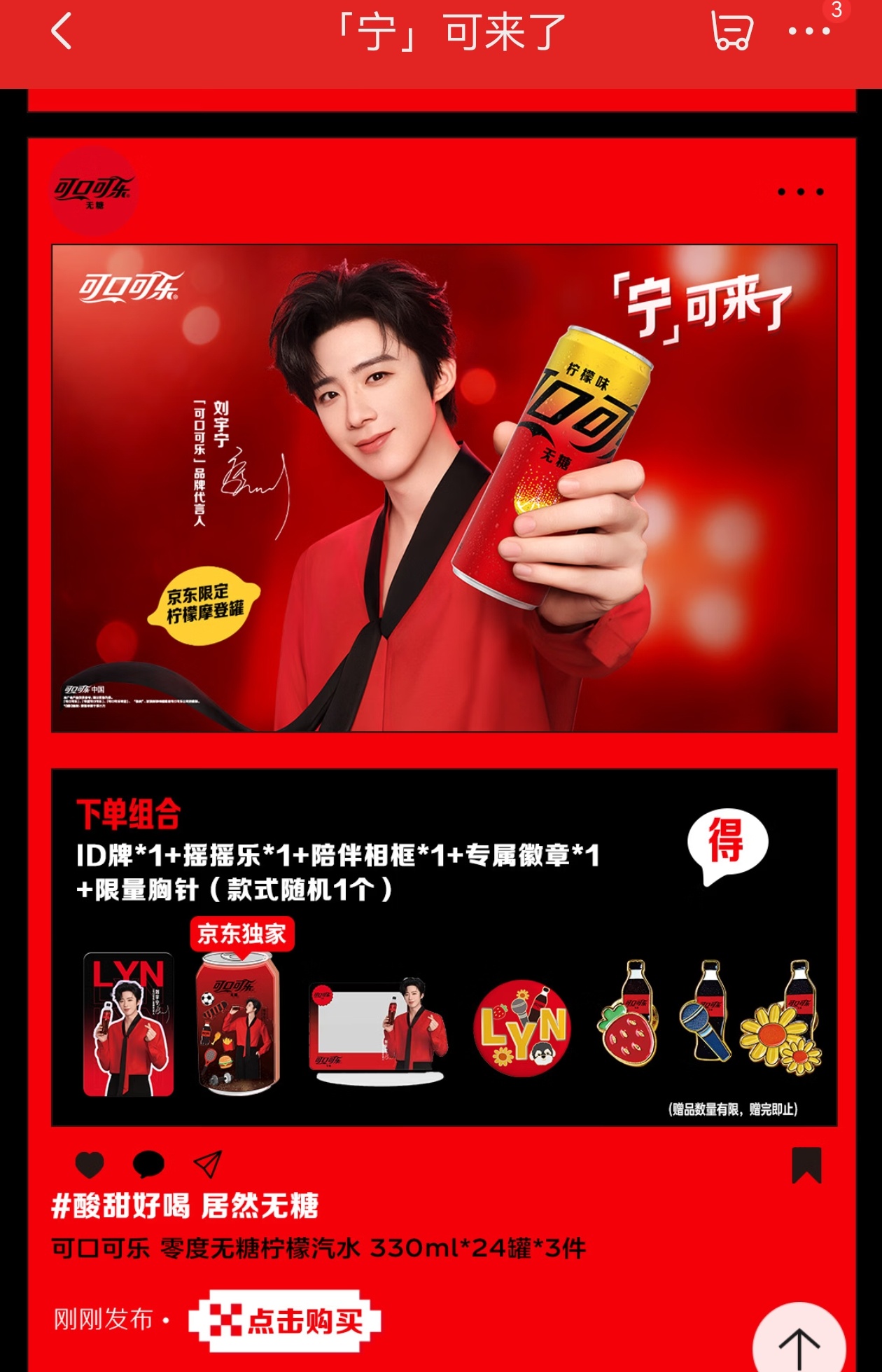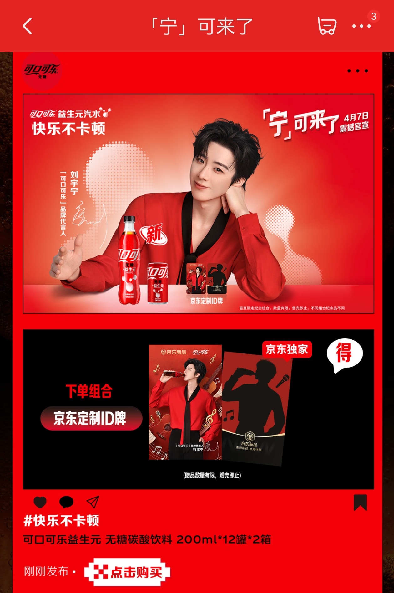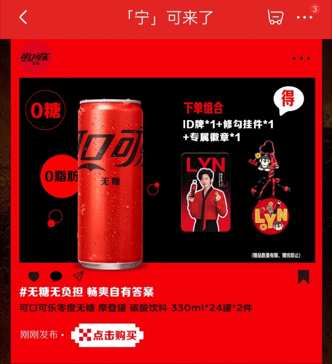 摩登兄弟可口可乐宁来了 「可口可乐」 品牌代言人刘宇宁「宁」可来了~今天上午10点先去jd冲刺~再去dy应该来得及吧!一定要抢到我心心念的周边啊!我宁也太好看了红红火火!