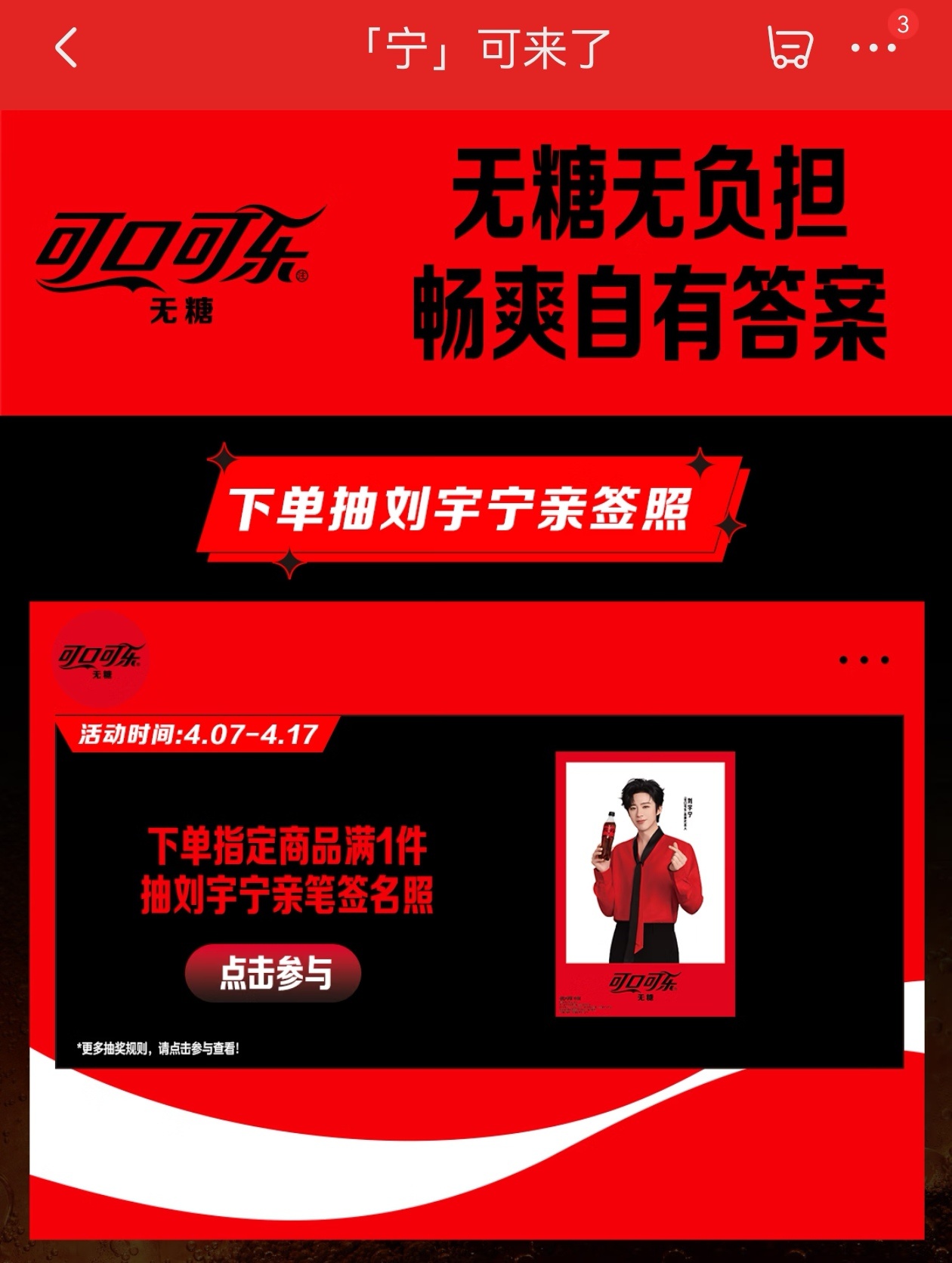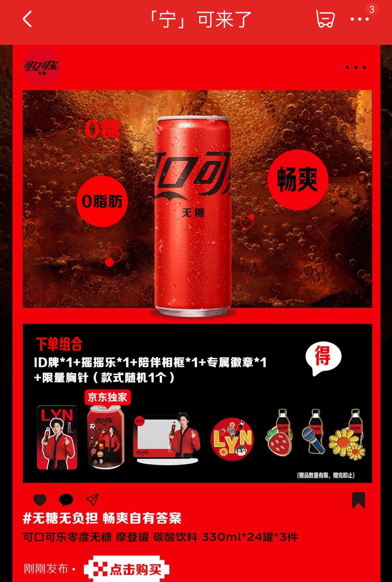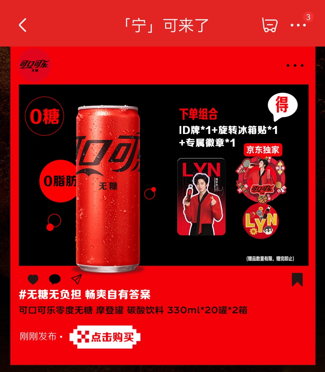 摩登兄弟可口可乐宁来了 「可口可乐」 品牌代言人刘宇宁「宁」可来了~今天上午10点先去jd冲刺~再去dy应该来得及吧!一定要抢到我心心念的周边啊!我宁也太好看了红红火火!