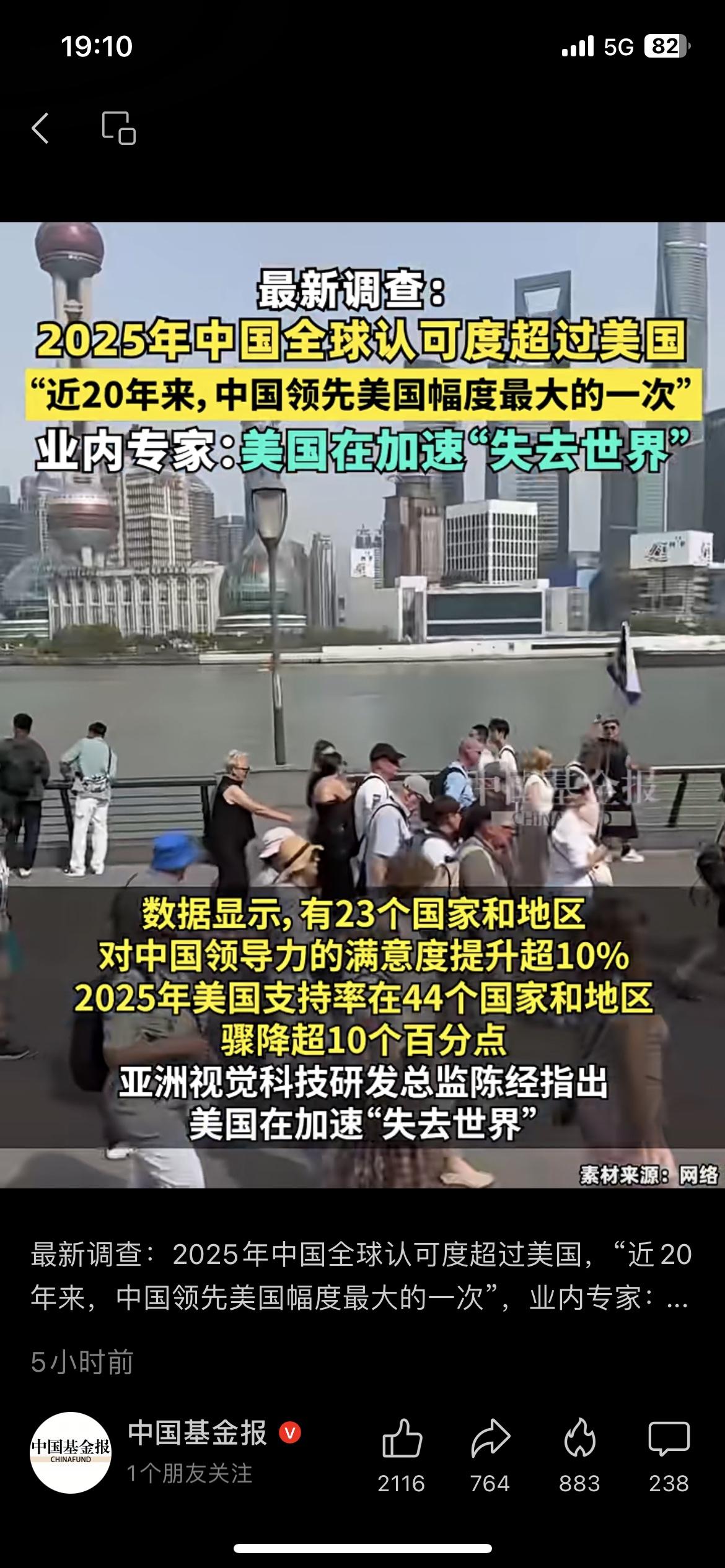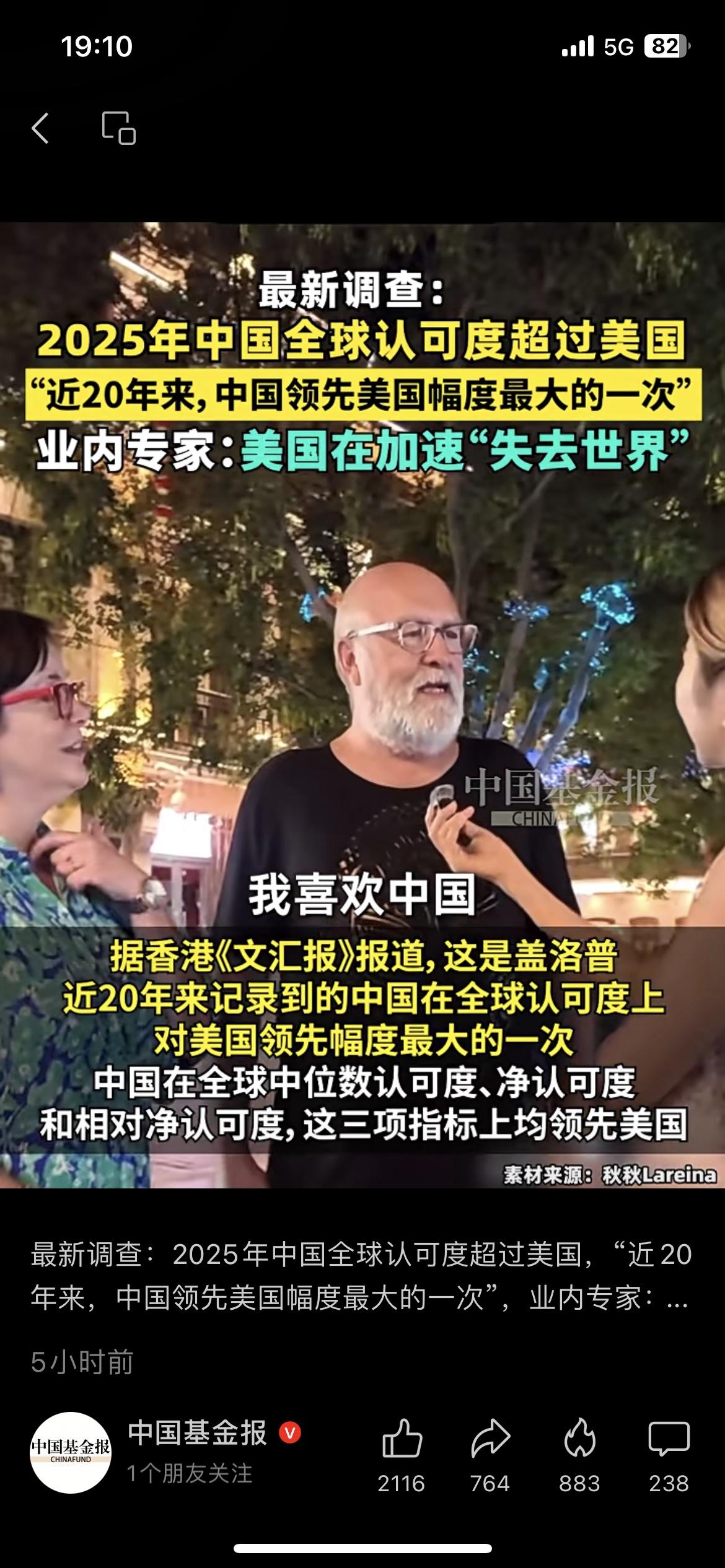 盖洛普最新全球调查显示,中国国际认可度持续走高,多项指标表现亮眼。 越来越多国家和地区对中国的发展理念、国际合作给予积极评价,国际好感度稳步提升。 这背后,是我们坚持互利共赢、推动共同发展的真实体现,也是中国国际影响力不断增强的有力证明。 每一份认可,都让咱普通人更有底气。 中国国际影响力 全球热点