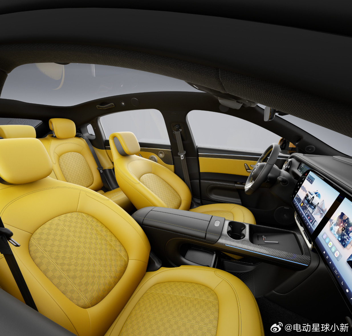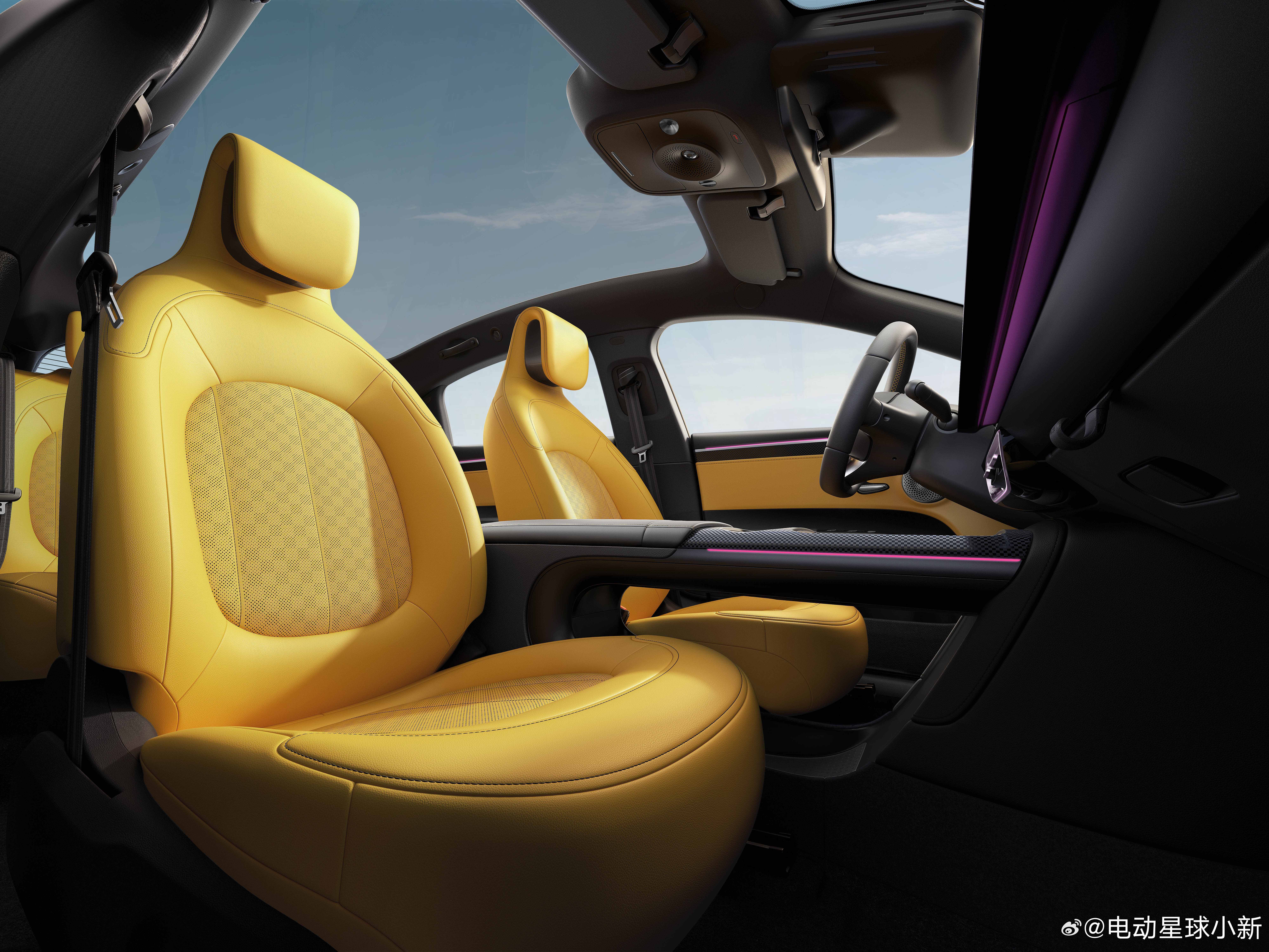 一共有三款内饰,这个黄色真的很吸睛;迪奥同款千鸟格,还用上了森海塞尔音响,奔驰 S 级同款 256 色氛围灯。