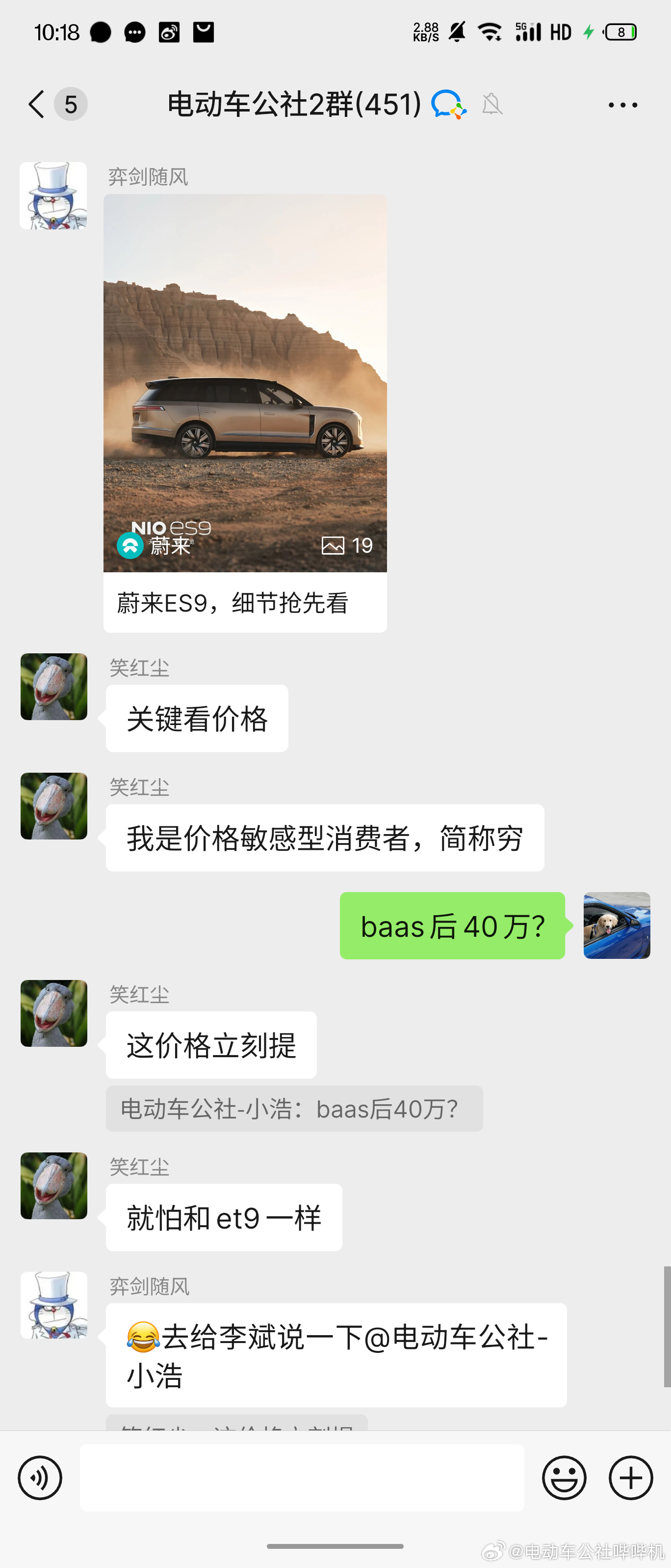 斌哥!我帮你猜了个价格,BaaS后40万多,群友肯定买!蔚来es9新能源汽车