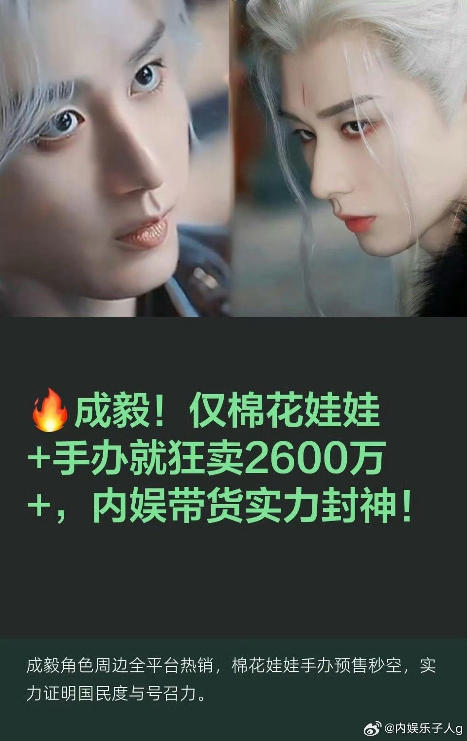 成毅剧集周边仅棉花娃娃和手办就狂卖2600万 …ee属于剧里特别有魅力的一个演员,各个角色粉都很多…