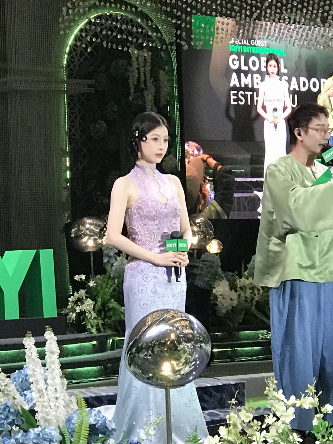 虞书欣今日海外爱奇艺活动…凭借双轨拿下爱奇艺年度最受欢迎陆剧女角色奖——Presented to Esther Yu 中国风紫色长裙 娇娇嗲嗲的好看~ 虞书欣