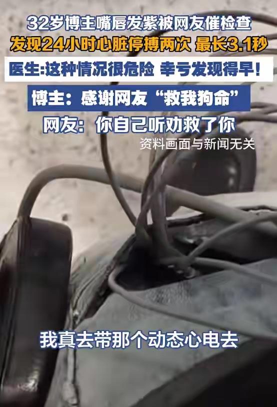近日,吉林长春32岁博主因嘴唇发紫被粉丝多次催检查,背上动态检测仪后,意外发现心脏两次停搏。博主吴先生称,自己完全没有感觉,但监测到自己心脏停搏了3秒。 有网友表示:平时注意饮食和作息规律,更要注意自己身边的人,不要轻易相信身边的任何一个人!对自己吃的喝的一定要经过自己的手做出来或者一定要用什么试纸测一下,有一种毒吃进身体里会不知不觉的中毒猝死。 自从有了抖音之后,很多博主无日无夜的直播,弄到自己人不人,鬼不鬼的,像发疯一样,有多少年轻的直播博主死在直播间。 建议相关部门,夜里10点到凌晨6点之间彻底关网,不允许直播带货,把夜里的生活还给年轻人,既促进人口,也促进家庭和睦。 活该他长命百岁、大富大贵,听劝是极其难得的品质,心理学家都说,成年人是很自发难改变思维的,听劝被动改变的概率更小,除非是经历重大变故。 对此大家怎么看呢