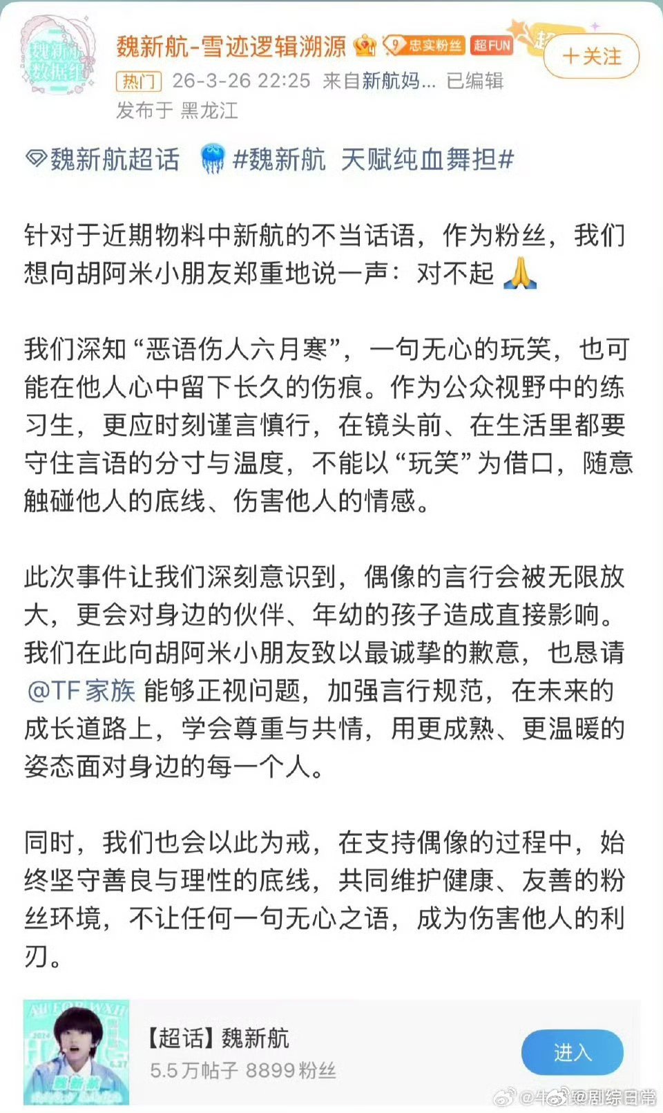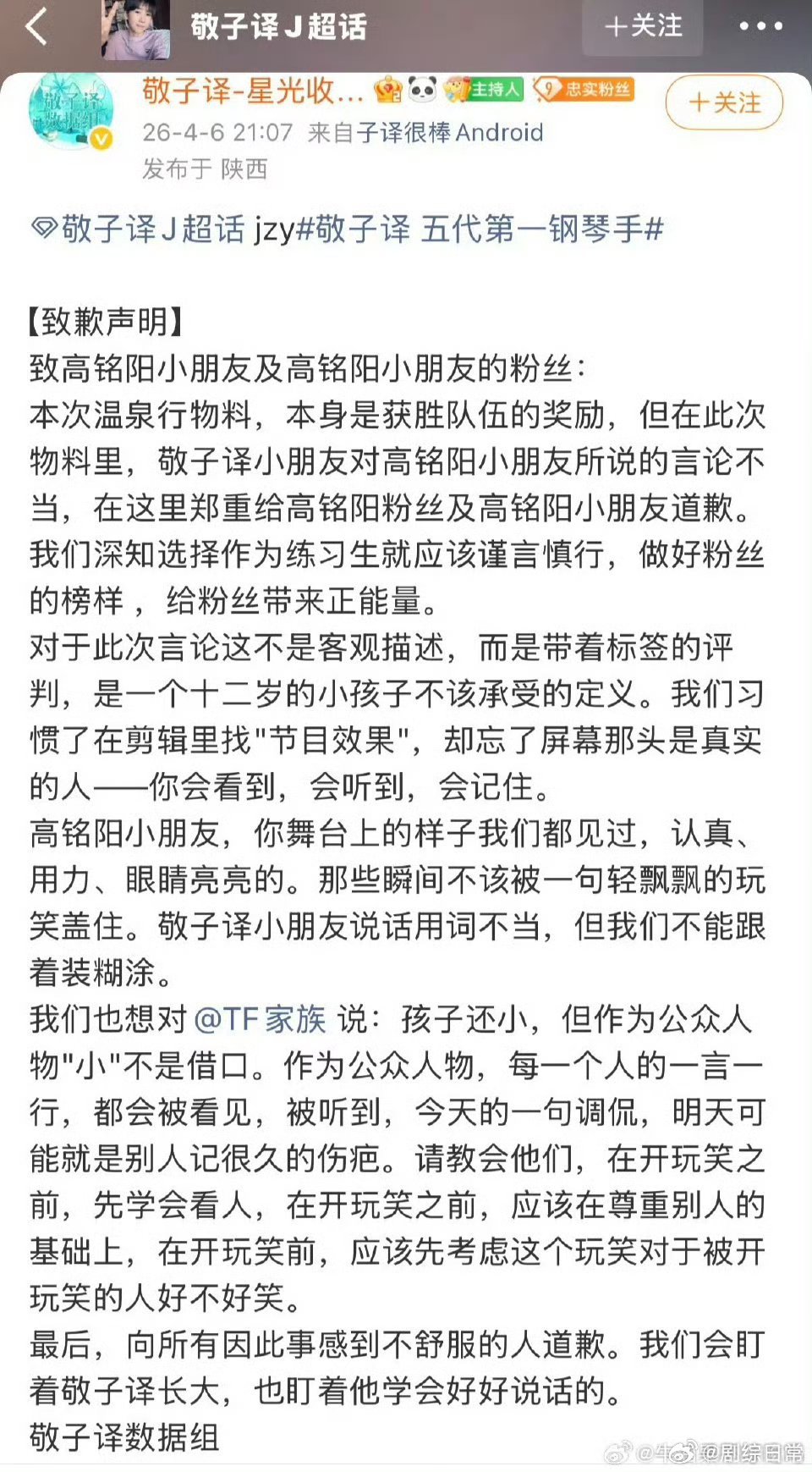 TF五代数据组替小孩道歉道歉声明有错别字就算了,还“代子道歉”,TF家族是彻底摆
