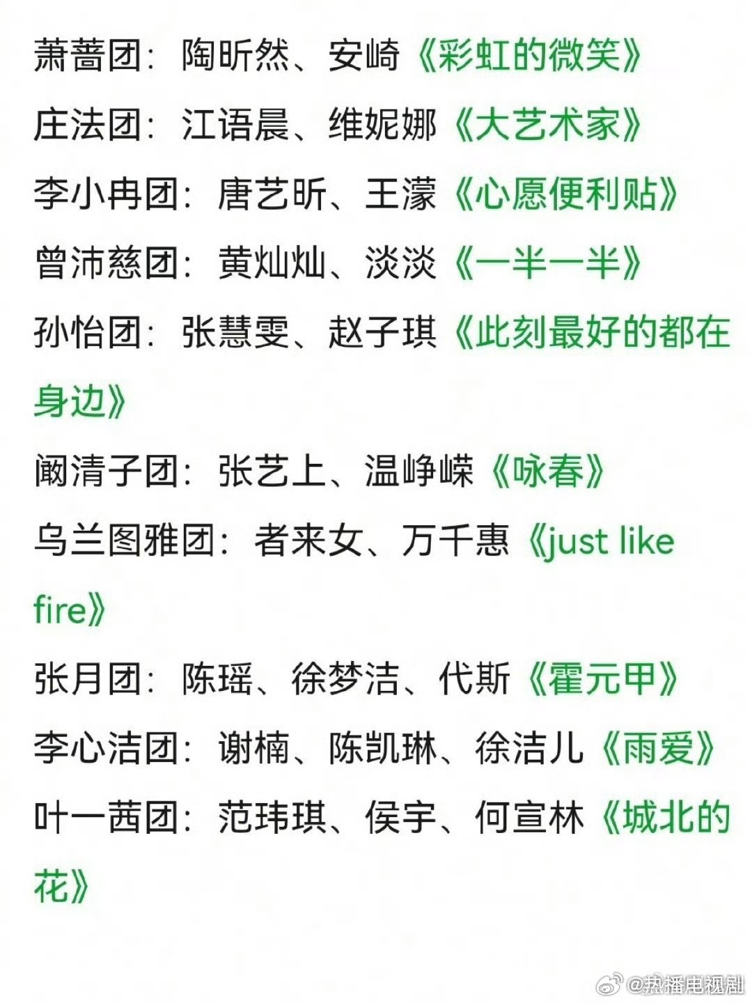 乘风2026一公组队张月、陈瑶、徐梦洁一组曾沛慈、黄灿灿、淡淡一组乌兰图雅、者来