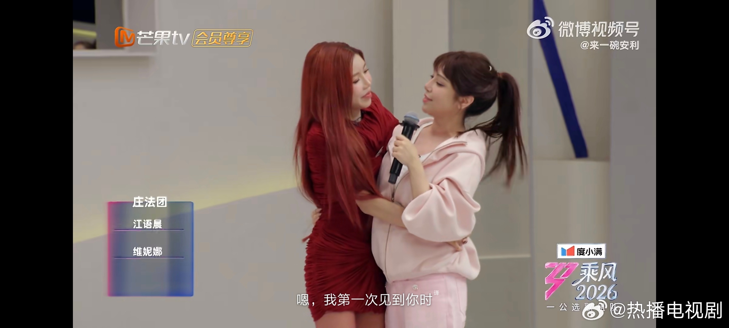 维妮娜英文对话能力一段简单的英文对话,成就了维妮娜与庄法的温柔相遇。庄法主动靠近,妮娜真诚回应,两个可爱女孩一见如故、彼此选中,互动细腻又戳心。相信她们会组成超有爱的小队,坐等舞台精彩表现~乘风2026
