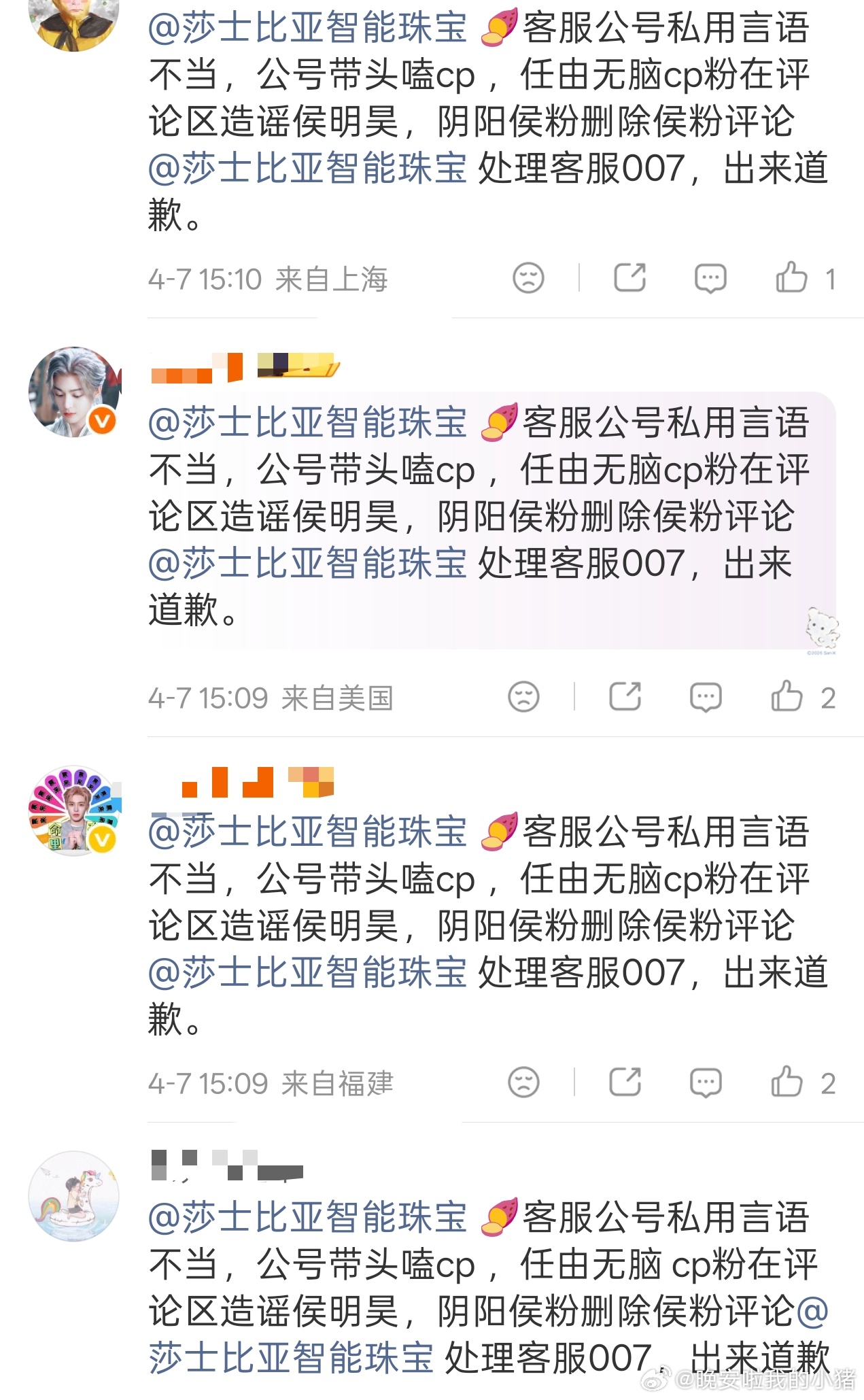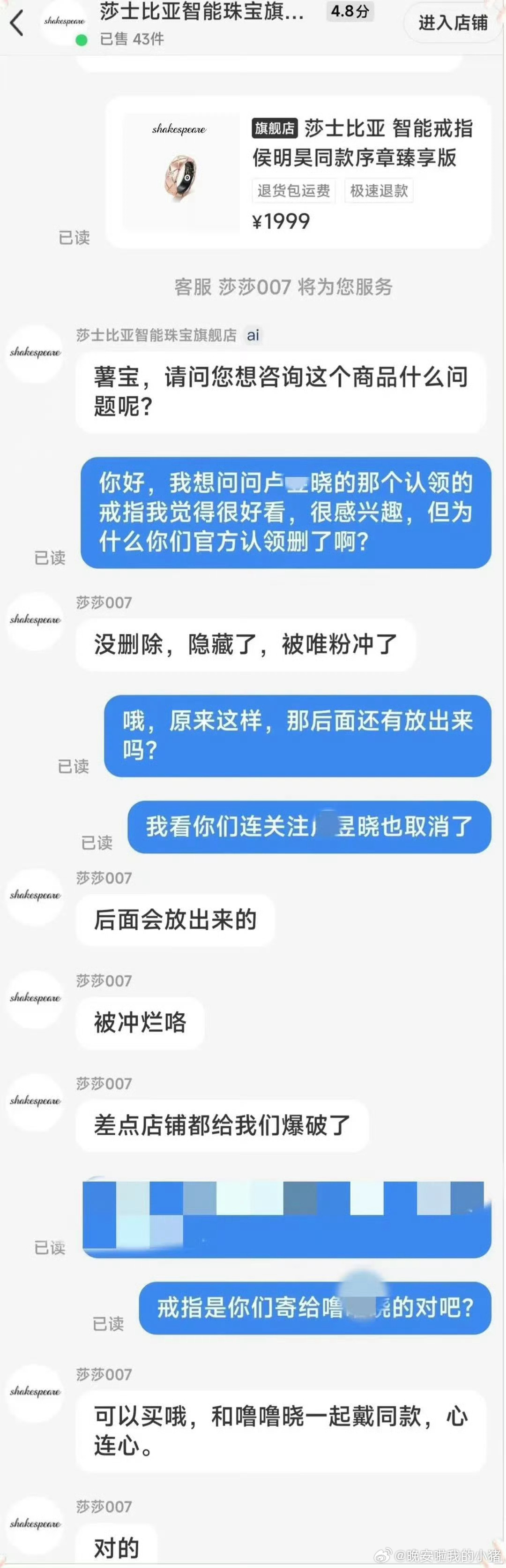 莎士比亚智能珠宝客服领磕侯明昊和卢昱晓cp,还说被唯粉🏔了