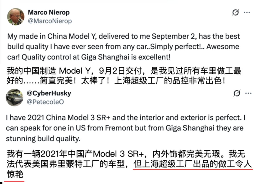 在特斯拉上海超级工厂的产品远销海外的过程中,中国制造车型的超高品质也收获海外车主的点赞。