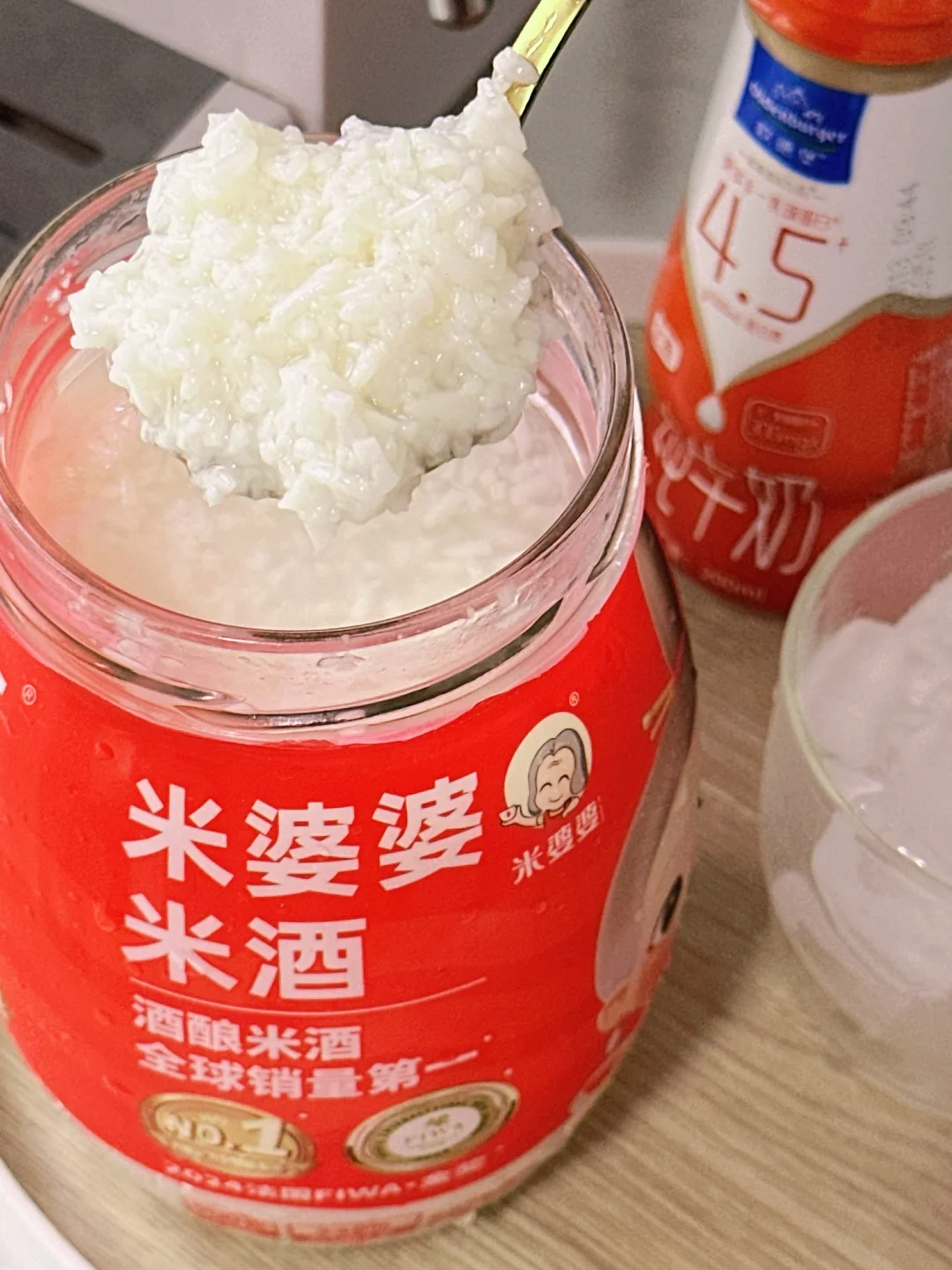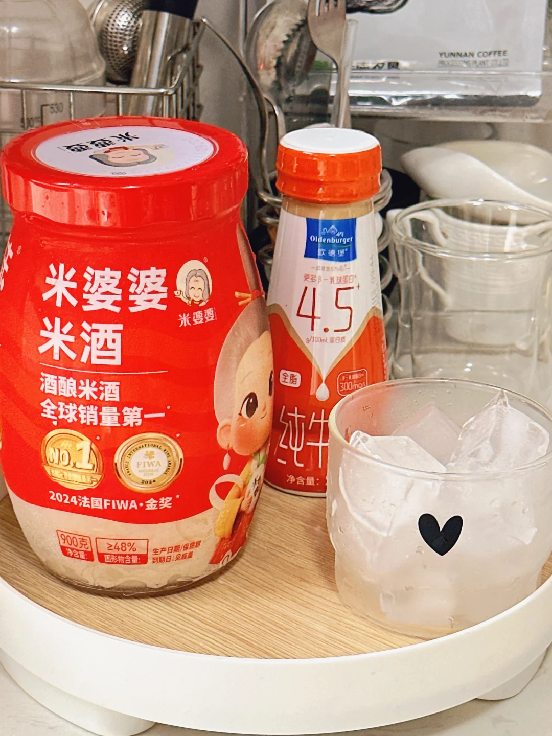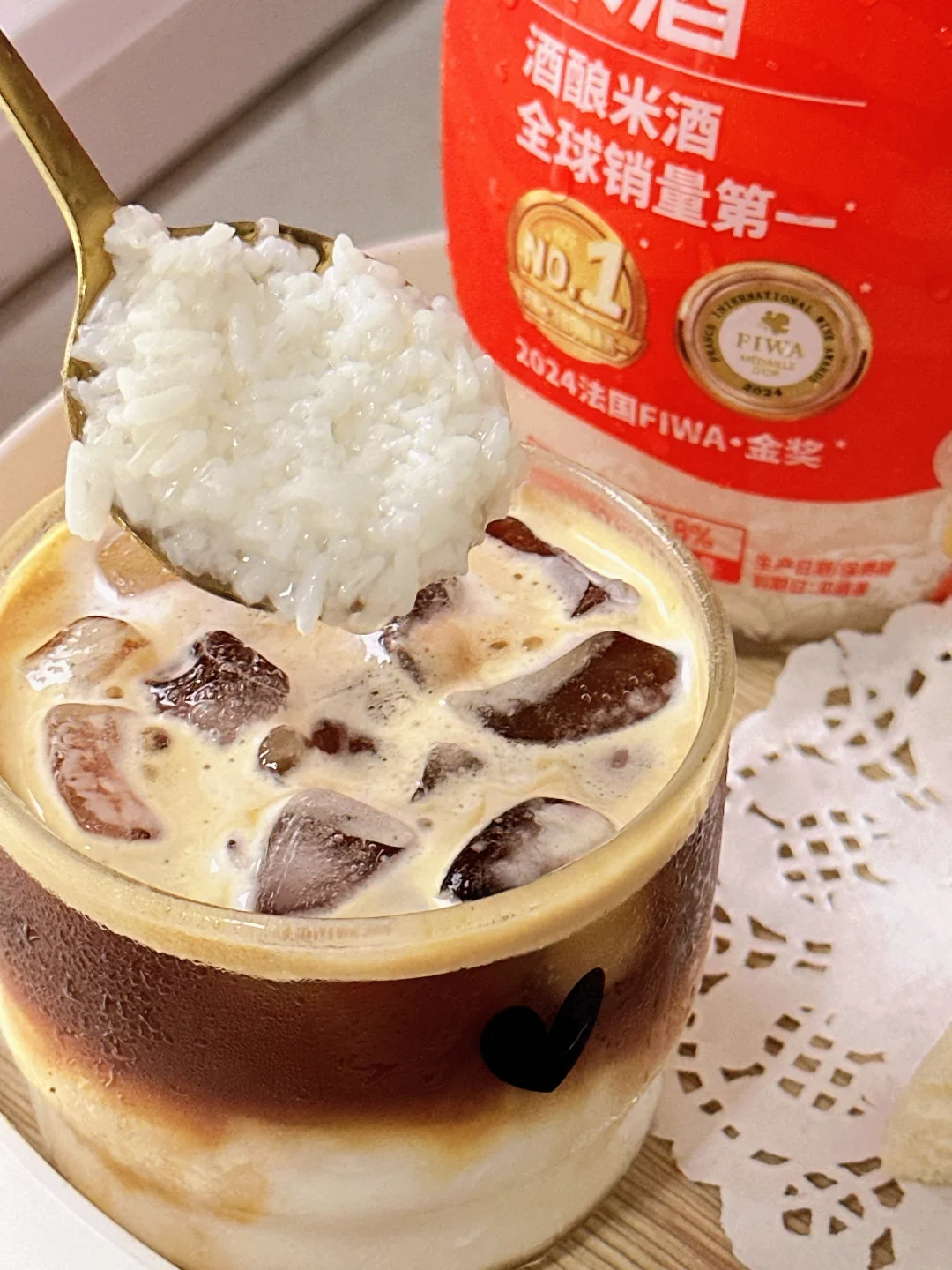 每天在家捣鼓饮品, 今天在网上学了一个新的配方[烟花R] 牛奶+咖啡+冰块+米酒 一口惊艳住了![皱眉R] 浓郁的酒酿+丝滑的牛奶+咖啡的香味 一口下去好喝到停不下来[色色R]