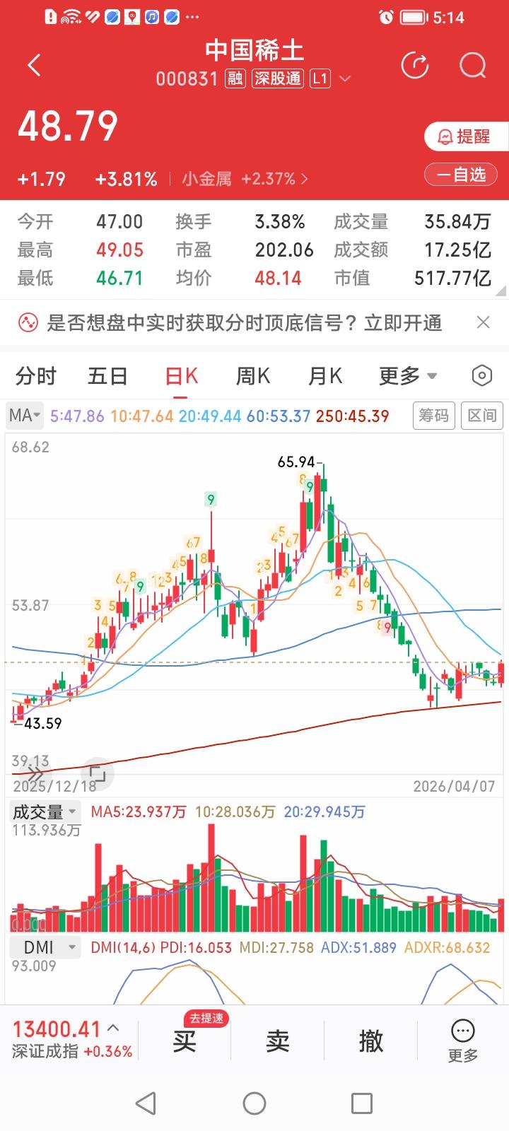 北方稀土,中国稀土,一个轻稀土,一个重稀土,哪个是金土?哪个是银土? 北方稀土,今天收盘大涨4.79%,中国稀土,今天收盘上涨3.81%。今天北方稀土终于一反常态涨幅超过了中国稀土 。 轻稀土用于新能源汽车永磁同步电机、风力发电机、机器人关节的伺服电机等。重稀土用于军工产品。 北方稀土目前动态市盈率87.76倍,中国稀土目前动态市盈率202.06倍。从估值角度看,似乎北方稀土更有优势。 但到底未来北方稀土和中国稀土谁的上涨潜力更大?可能还得看轻稀土和重稀土谁的景气度更高了。