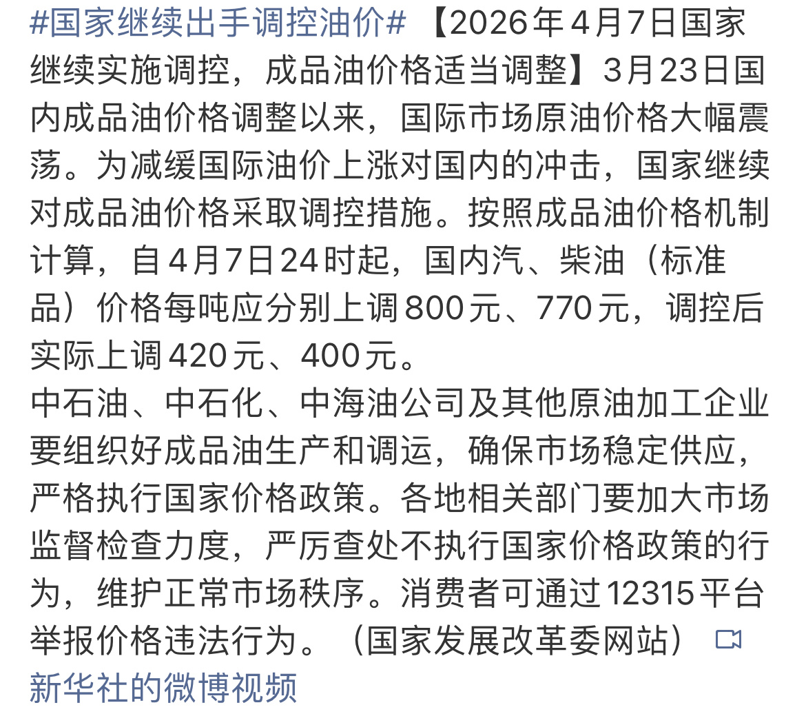 国家继续出手调控油价这次调价前来不及加满油了不过还是感谢咱妈帮油价溢价砍半,今天