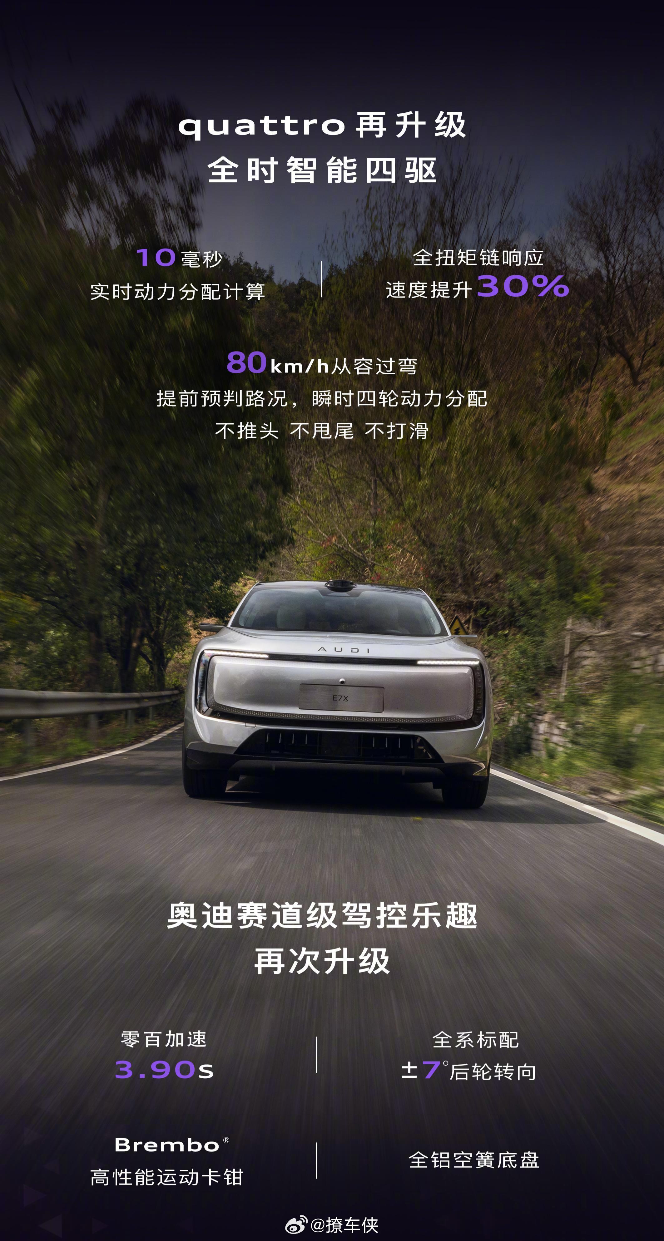 奥迪登顶亚洲山脊赛道最速suv 奥迪还没上市的E7X,直接在山脊赛道刷了个最速SUV,1分47秒93。那条路全是发卡弯、大陡坡,一般SUV上去就废了。结果它靠着10毫秒就响应的四驱和能后轮转向的底盘,劈弯跟小钢炮似的。再配上宽后胎和强力刹车,山路稳得一批。既有硬核越野底子,又能带娃买菜。想兼顾家用和驾驶乐趣?这车值得蹲一波!大v聊车