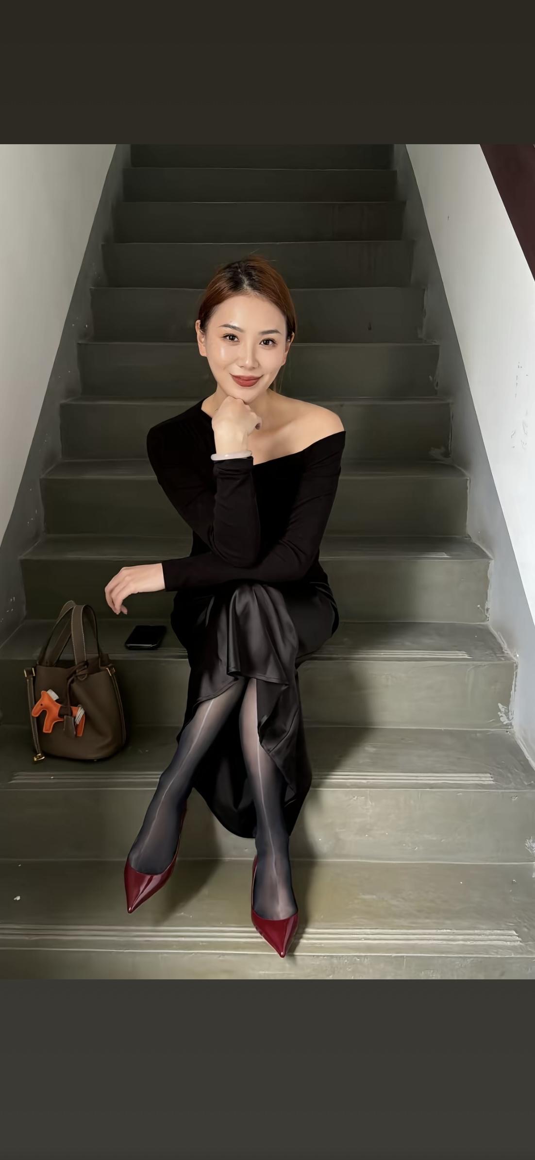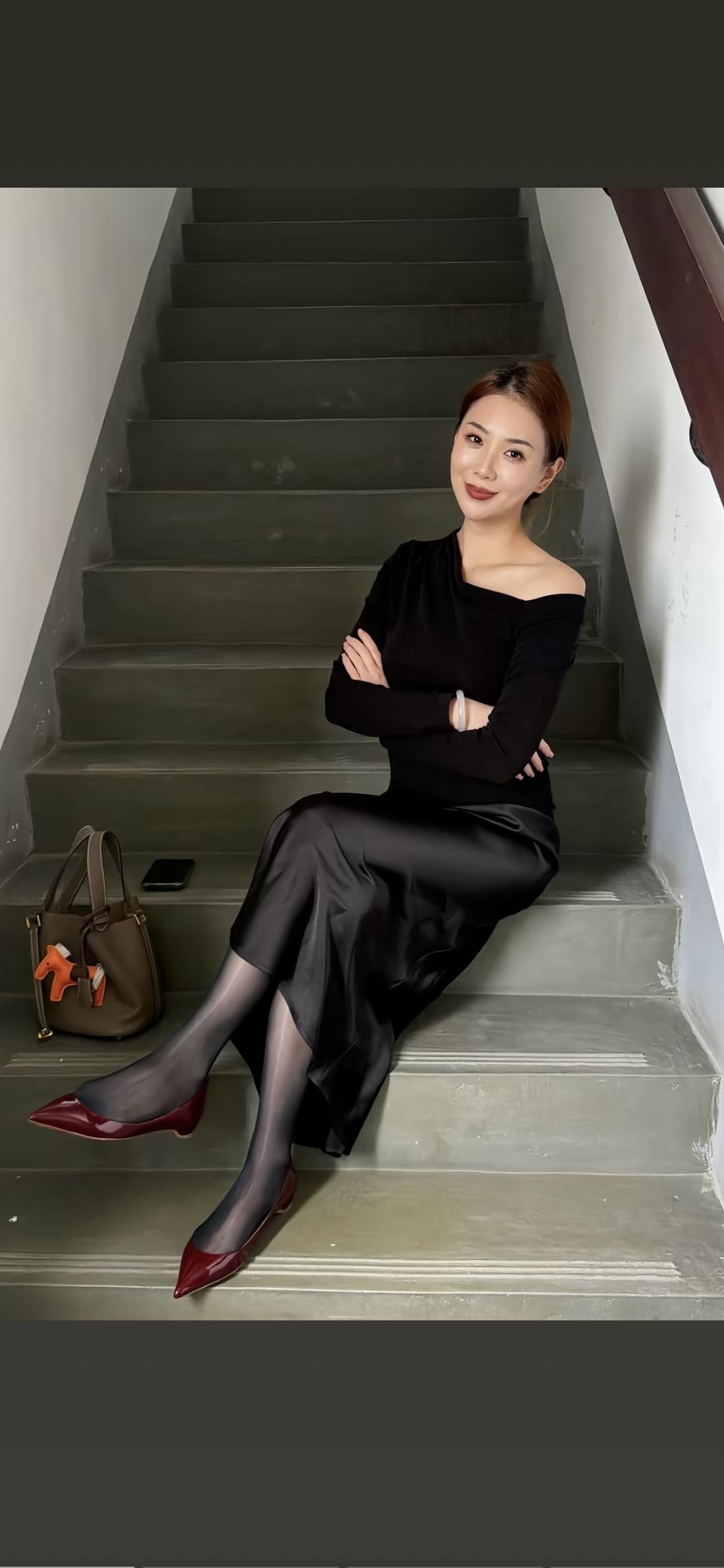 她坐在楼梯上,一袭黑色连衣裙将她的气质衬托得淋漓尽致。黑色本就神秘,穿在她身上,更添了几分优雅与自信。 她微微抬头,眼神坚定又从容,仿佛在思考着什么。那挺直的脊背,展现出一种不卑不亢的姿态。路过的人都会忍不住多看她几眼,被她的魅力所吸引。气质吊带黑裙 轻奢时尚黑裙