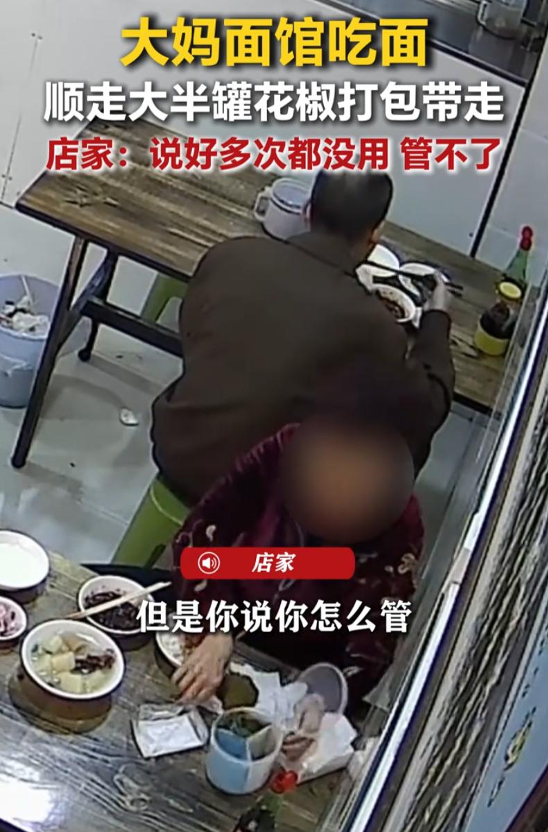 “太丢人了!”贵州遵义,一面馆老板发现一个餐桌上的花椒几乎见底,奇怪的是,店里所有花椒都是早上现加满的,唯独这一桌没有了,他觉得不对劲,查询监控一看,竟然是被一位大妈给顺走了,更关键的是,大妈还是个“惯犯”,老板也想不明白她为什么要这样 监控里,一位大妈点了一碗面,吃到快结束时,不慌不忙地拿起桌上的纸巾,左右张望了一下,确认没人盯着她,然后熟练地拿起桌上的花椒罐,往纸巾上倒,倒够了,包起来,揣走。整个过程行云流水,一气呵成,不像头一回干这事 老板后来回忆,这大妈不是第一次了。之前就发现过她拿花椒,也当面跟她说过。可大妈显然没把这话当回事,该拿还是拿 老板也挺无奈。你说这事大吧,真不大,几块钱的花椒。你说不管吧,天天这么拿也不是个事。关键是不知道怎么管。为了几勺花椒跟顾客翻脸?犯不上。但就这么纵容着?心里又不舒服 老板最后说了句话,挺实在的:要是大妈真觉得店里的花椒好吃,跟自己说一声,送她两斤都行,真没必要这样偷偷摸摸的 说起来,花椒这东西真不值几个钱。面馆用的花椒,就算是品质好一点的,一斤也就几十块钱。大妈每次拿的量,撑死了值一两块钱。为了一两块钱的东西,冒着被发现的尴尬,值吗?显然不值。但有些人就是控制不住,看到公家的、公共的东西,手就痒。这跟东西值不值钱没关系,是一种习惯 老板说送她两斤都行,这话我相信是真心的。但问题在于,大妈如果真开口要,老板会送吗?可能会,但送完之后呢?下次大妈再来吃面,还好意思收她钱吗?这里面有一种微妙的社交心理。大妈选择偷拿而不是开口要,恰恰说明她知道这事不光彩,但她更不愿意欠人情 最后想对那位大妈说一句:老板是真不介意送你两斤花椒,但你这样偷偷摸摸的,丢的不是花椒,是脸面